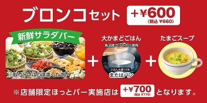 ※一部 ほっとバー実施店舗は、ブロンコセット700円(税込 770円)、新鮮サラダバーセット600円(税込 660円)となります。