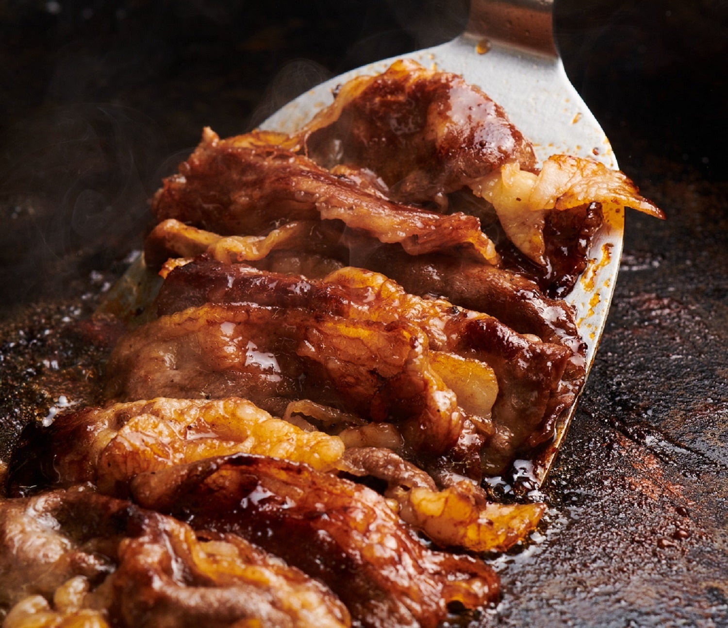 特製の秘伝タレで焼き上げた肉は香ばしく、ごはんが進むやみつきな味わい。熱々で食べていただく為に、お客様にお渡しする直前まで鉄板をIHで温め、受け取る際にはタレの香ばしい香りとジュージュー音で食欲をそそります。