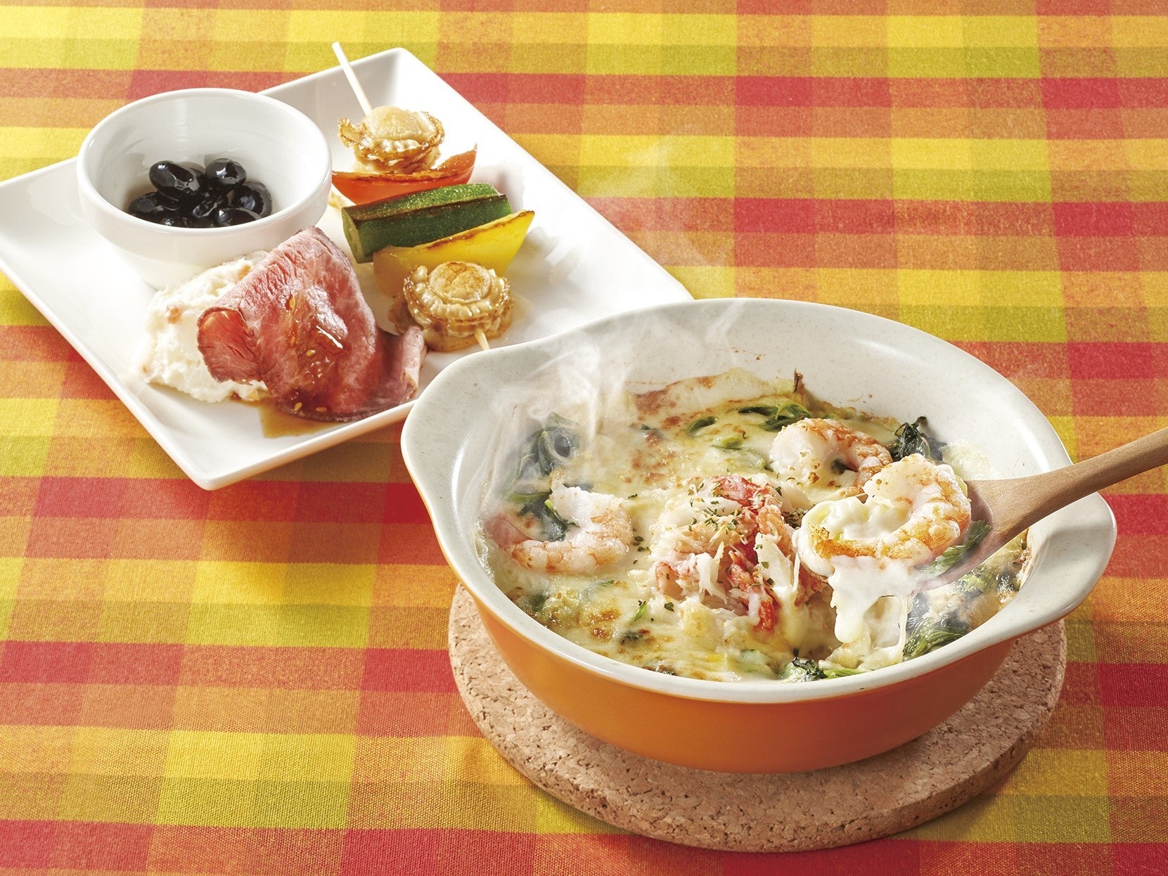 ※「オニオングラタンスープ」は「北海道産とうもろこしのポタージュ」に変更できます
