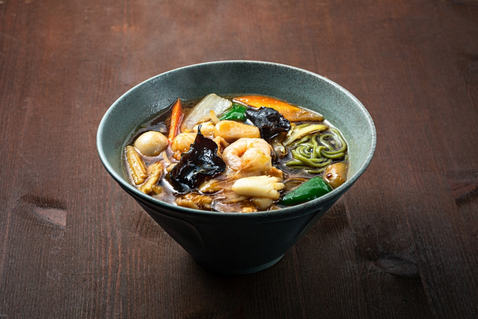 醤油ベースのスープは、熱々で楽しめる「あんかけスープ」を採用、魚介の風味を餡に包み、だしの旨味を存分に味わうことができます。もちろん、麺との相性もバッチリです。
