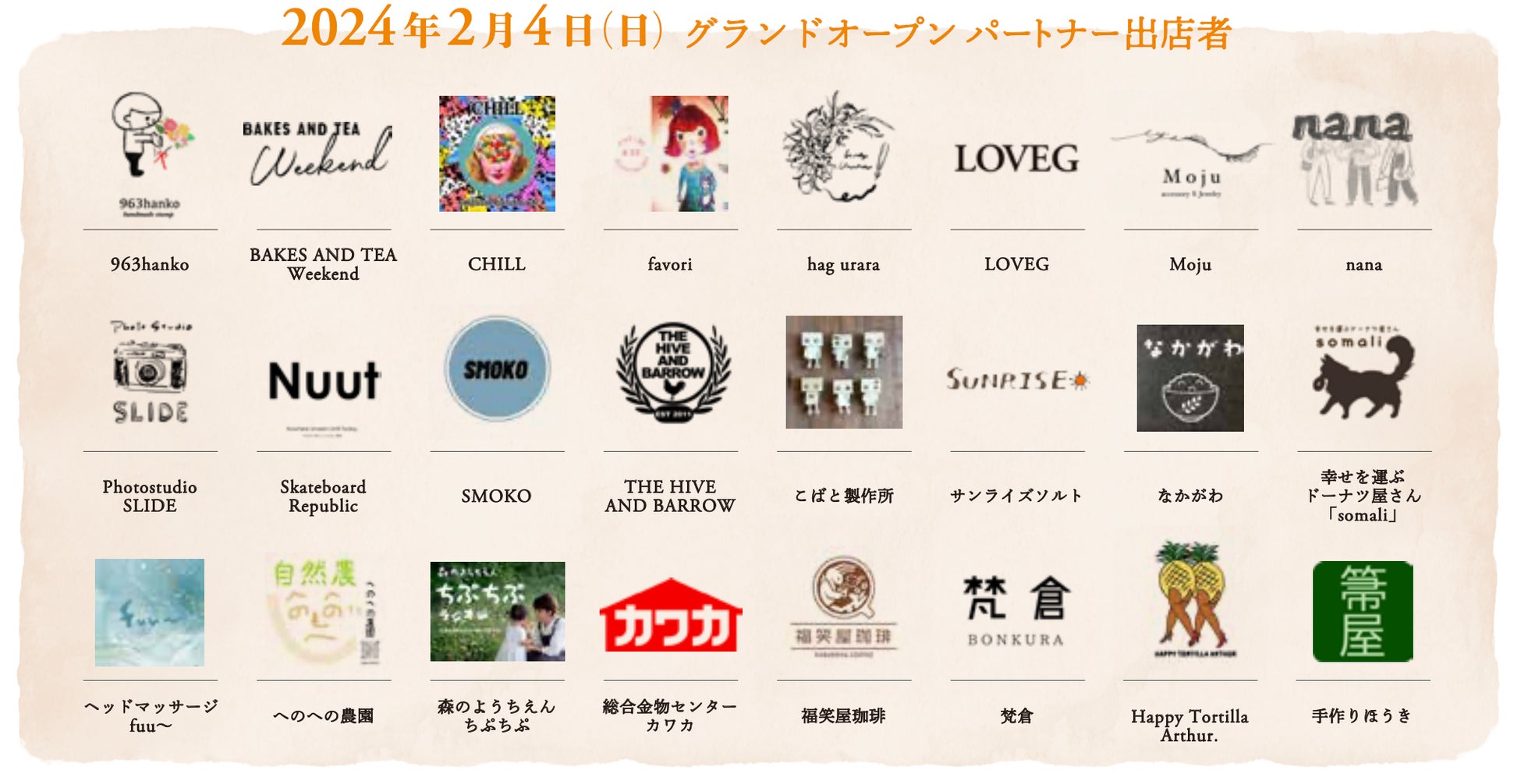 現在確定している『Bocchi ツキ市2月のパートナー出店者様を一部ご紹介します(今後も増加予定)※順不動