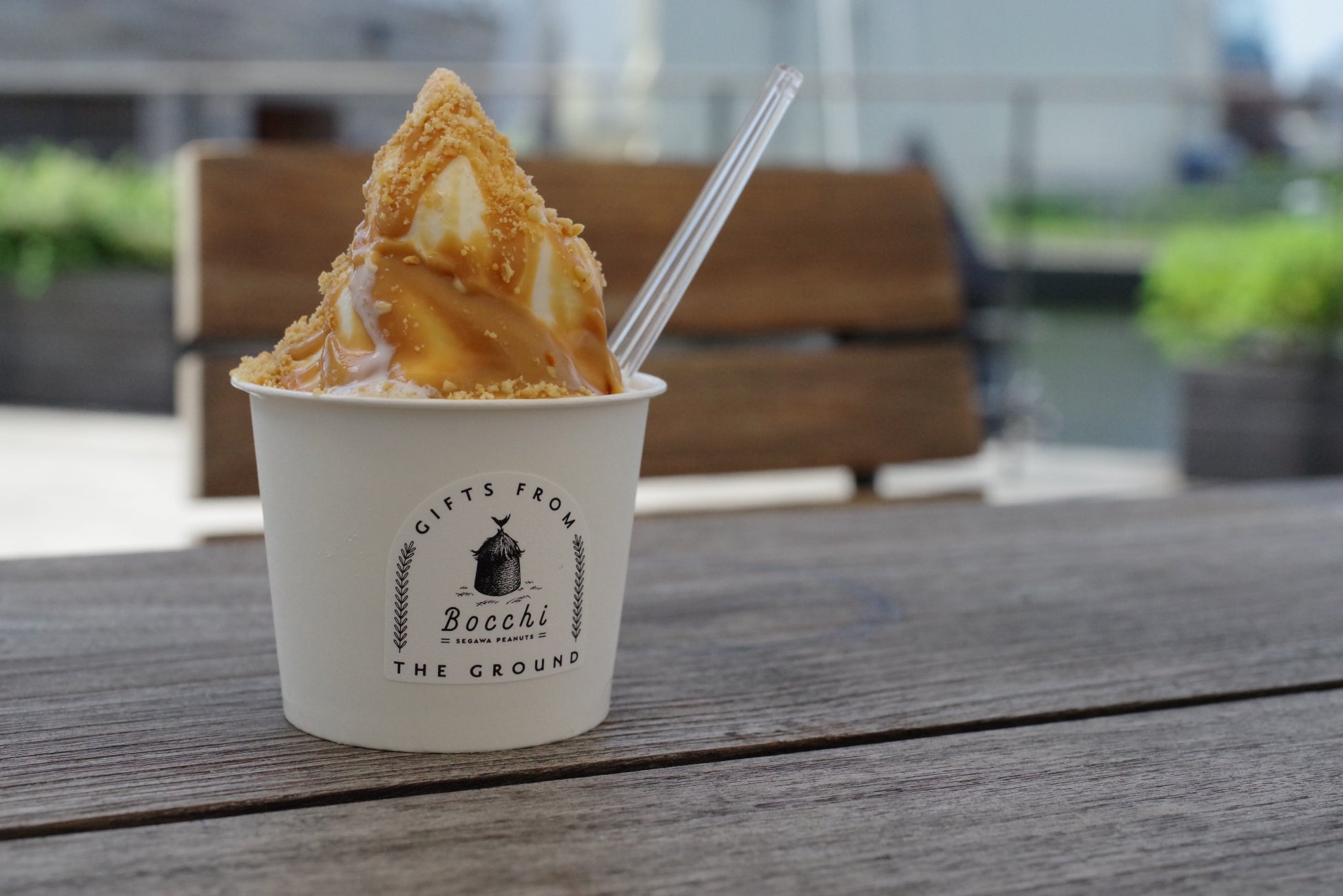 全国にファンのいる森林ノ牧場名物ソフトクリームに、Bocchiの「畑で採れたピーナッツペースト」&ピーナッツクランチを上からかけている絶品の商品です。また、Bocchi「畑で採れたピーナッツのあんこを使用したピーナッツモンブラン」ソフトも販売予定です。
