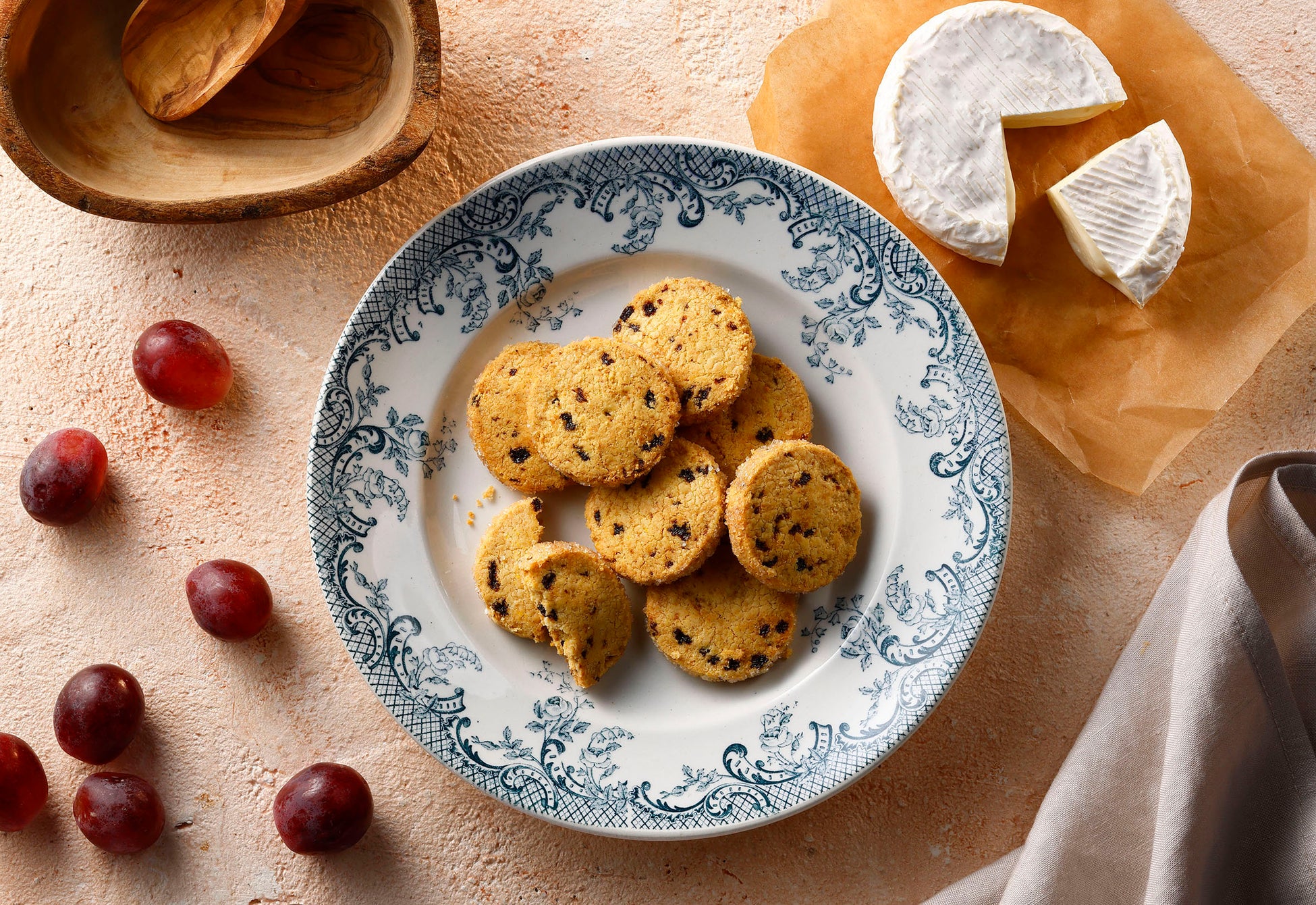 濃厚な味わいのカマンベールクッキーに、甘みあるレーズンの食感が楽しい一品です。(チーズパウダー中カマンベール47%以上使用)