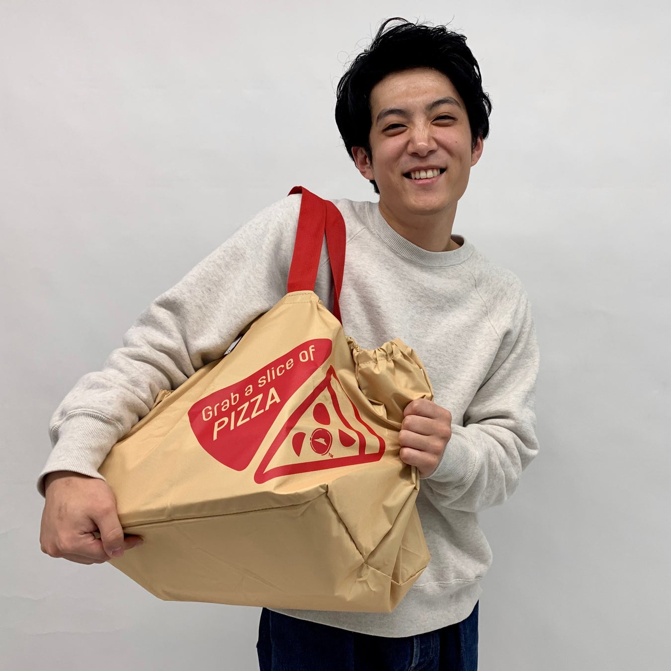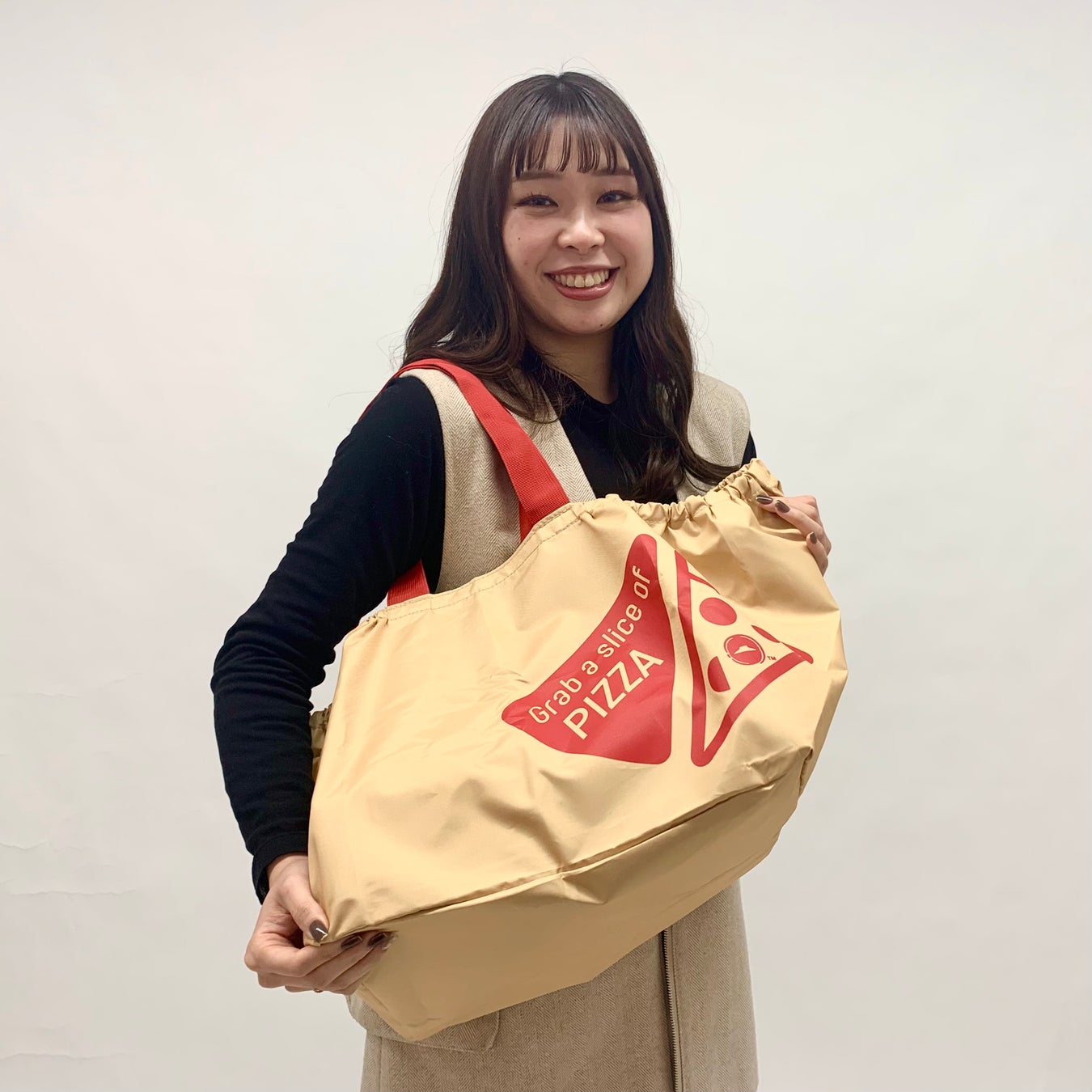 ▲ピザハットオリジナルトートバッグのイメージ画像と利用イメージ