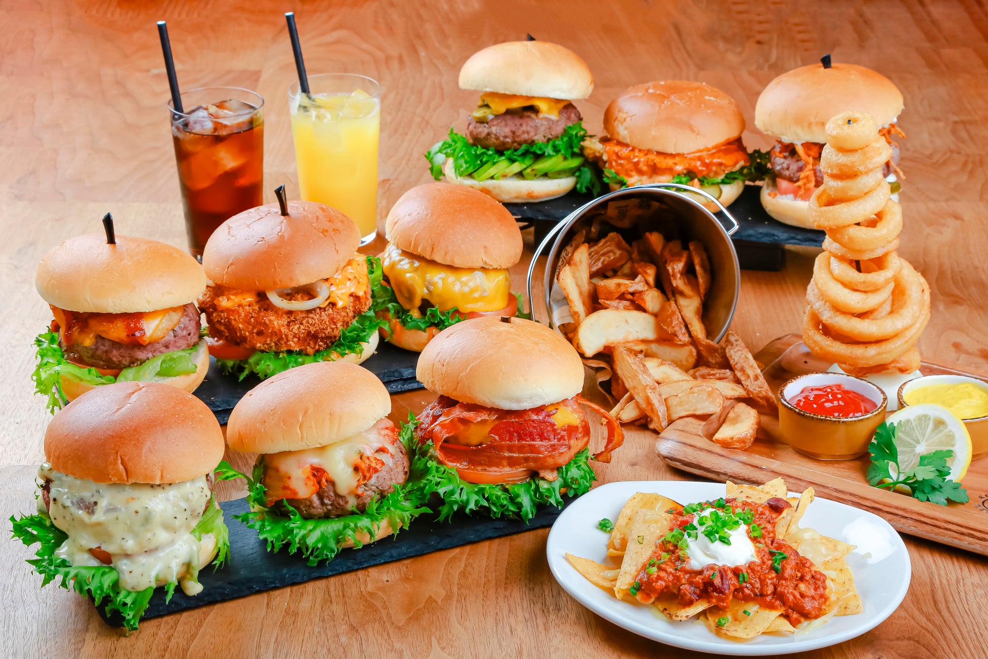 今回のリニューアルではボリューミーで種類豊富なバーガーを中心としたメニューをご用意しております。