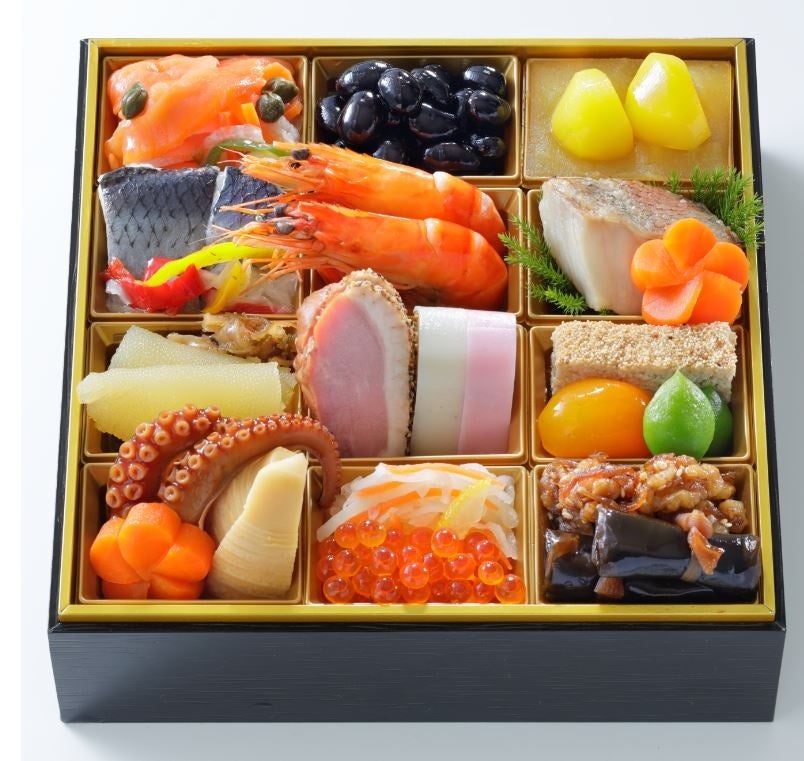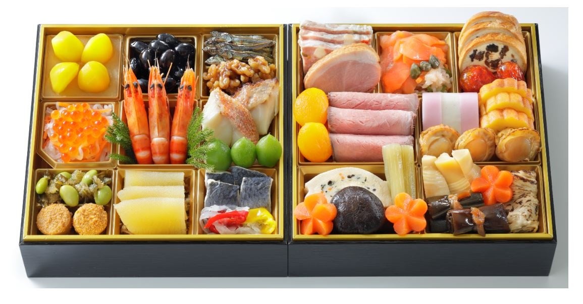 【内容】迎春に相応しい和風の味わいはもちろん、伝統的な祝い肴からお煮しめ、人気のローストビーフなどをバランスよく盛り込んだ和洋二段重です。