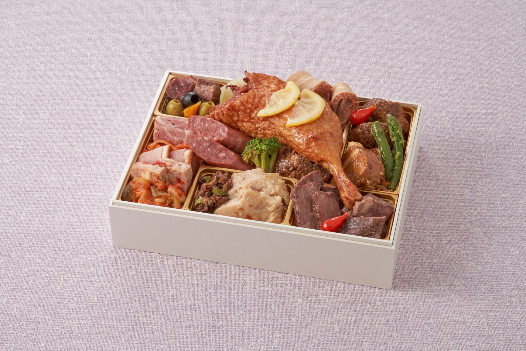 【内容】牛肉やジビエなどを使ったステーキやミートローフ、ソーセージなどバリエーション豊かな肉づくしなおせち。新年早々かぶりつきたい方も楽しめるおせちに仕上がりました。