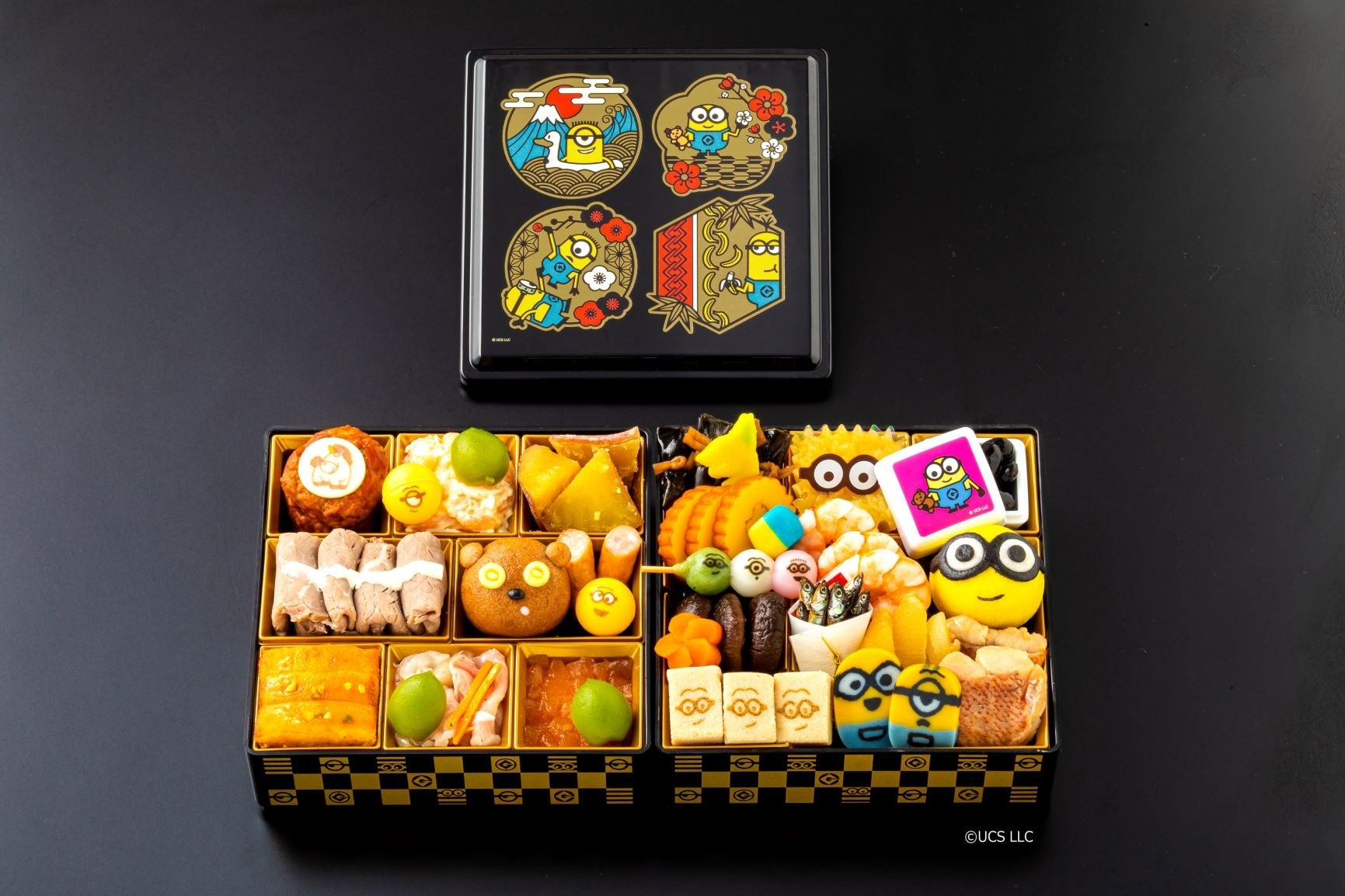 【内容】ハチャメチャなミニオンがいっぱいのキュートなおせち。味は大人も楽しめるワンランク上の本格派和洋。目で楽しんで、味で楽しむ、そしてSNS映えなおせちに仕上がりました。