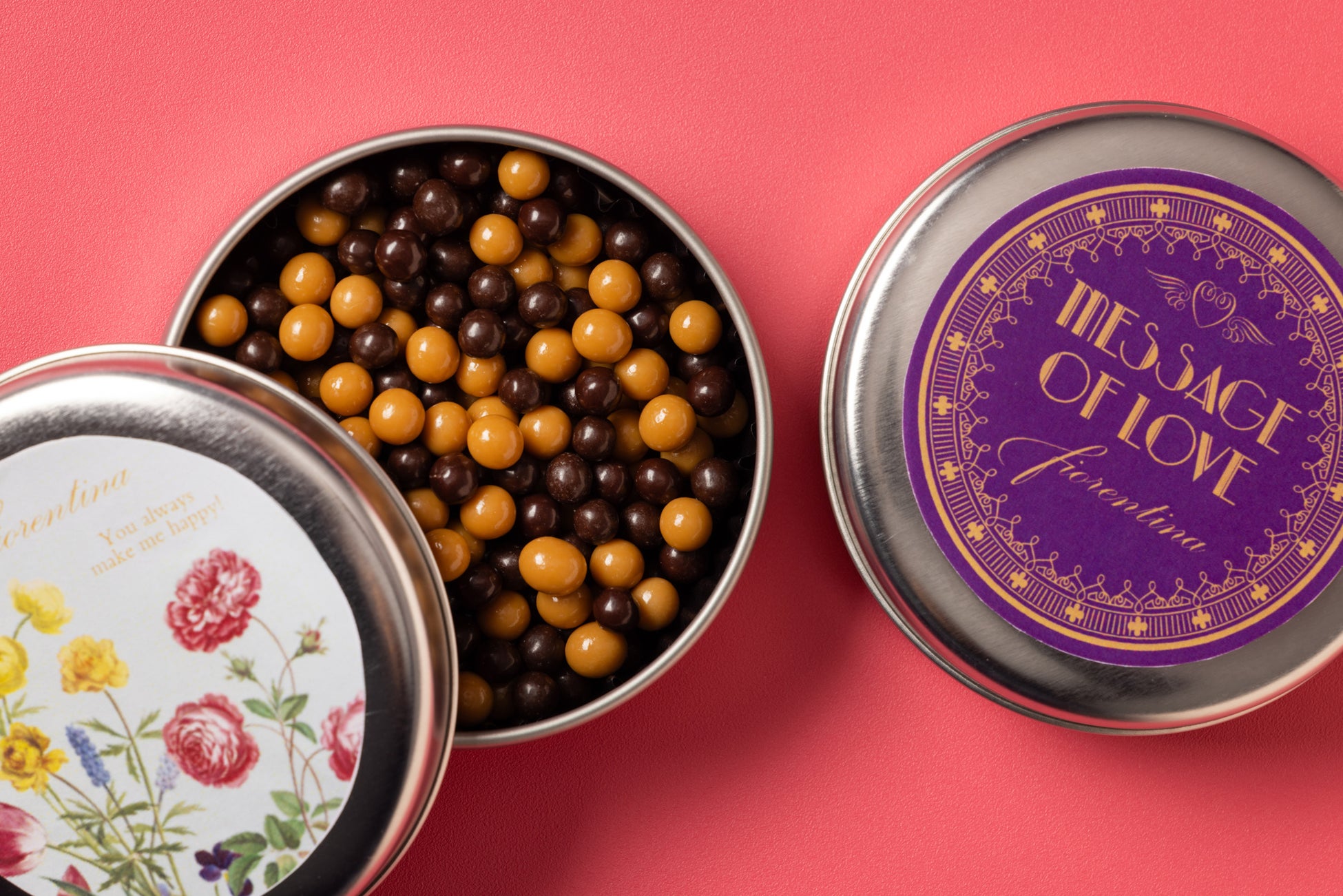 スイートチョコレートと、第4のチョコレートとも言われるブロンズチョコレートでシリアルを包み込んだ、真珠のようにきらめくチョコレート。香り高いカカオの味わいが感じられるスイートチョコレートと、なめらかな口どけのブロンズチョコレートをお楽しみいただけます。