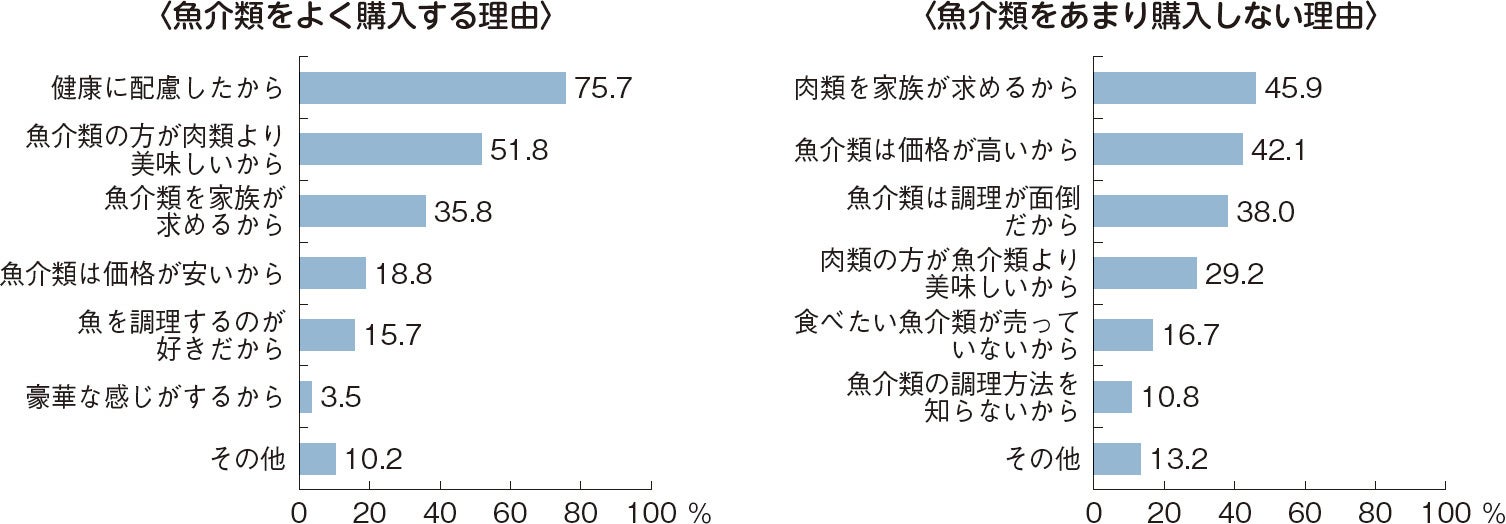 上記のグラフから読みとれるように魚を食べたいと思っても、値段が高い・調理が難しそうなどの理由が挙げられています。