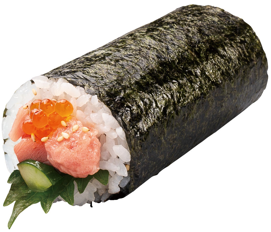 本鮪中とろ、本鮪ねぎとろ、いくら、きゅうり、大葉、ごま