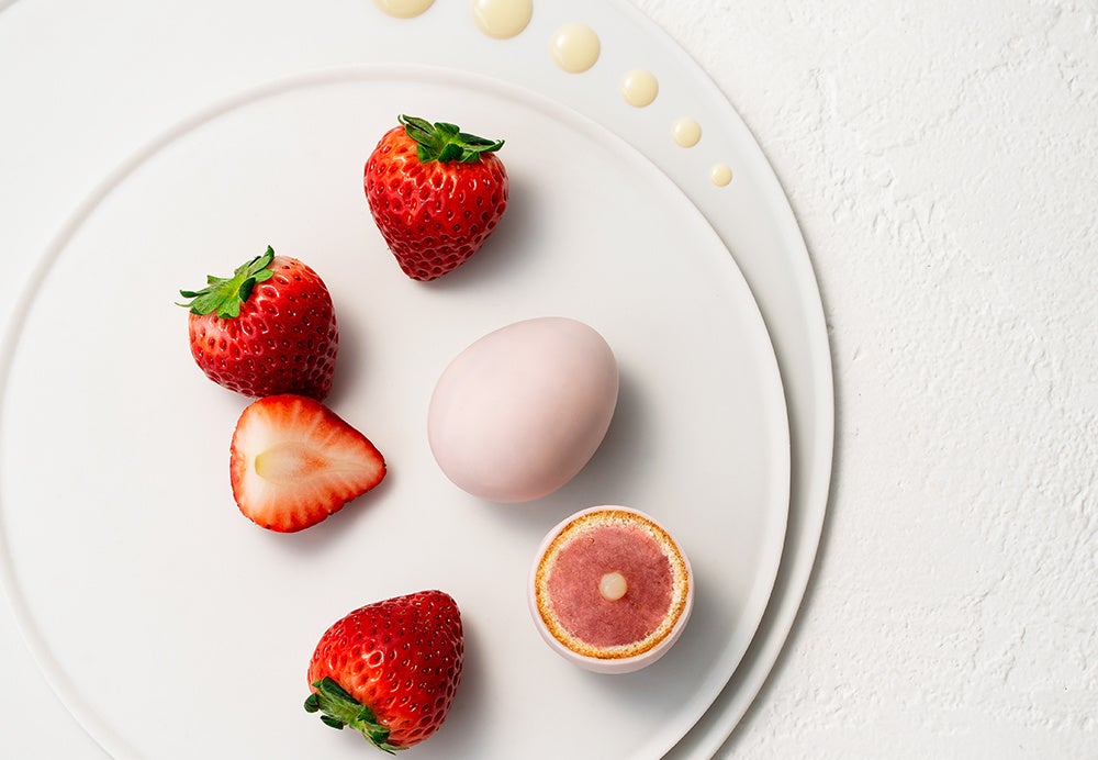 栃木県産とちおとめを使用した、いちごピューレと練乳を炊き合わせたこだわりのいちごミルク餡で、甘酸っぱいいちごとミルクのとろける味わいの練乳ペーストをカステラ生地でつつみこみ、最後にふんわりと淡いピンク色のチョコでコーティング。見た目にも可愛らしいたまご型のお菓子をつくりました。お口いっぱいにひろがる果実感と優しい味わいをお楽しみください。