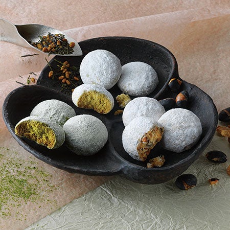 抹茶、玄米茶、黒豆。京都で親しまれてきた味わいを、さくさくほろほろ食感のひと口サイズのクッキーにしました。生地に加えた豆乳クリームバターや米粉、ホワイトチョコレートが、それぞれの素材のおいしさをより引き立たせています。