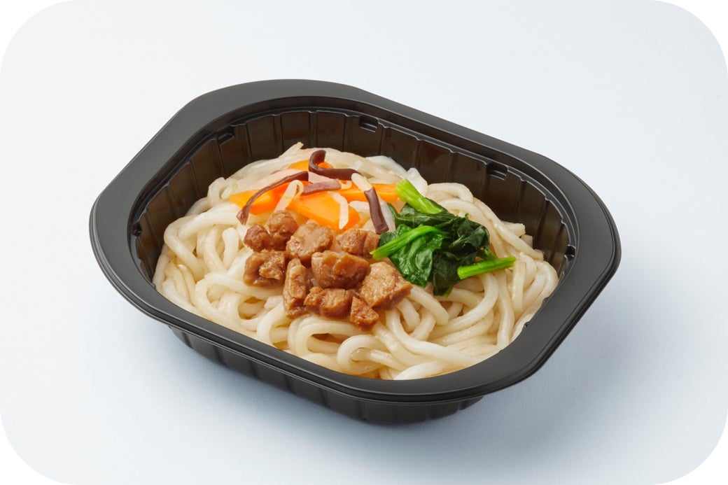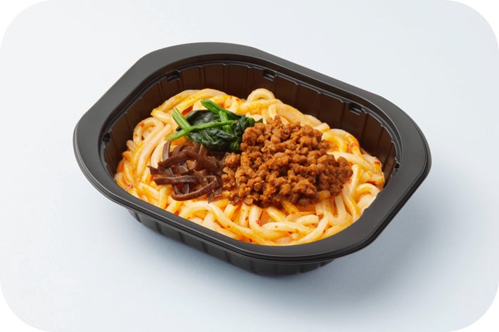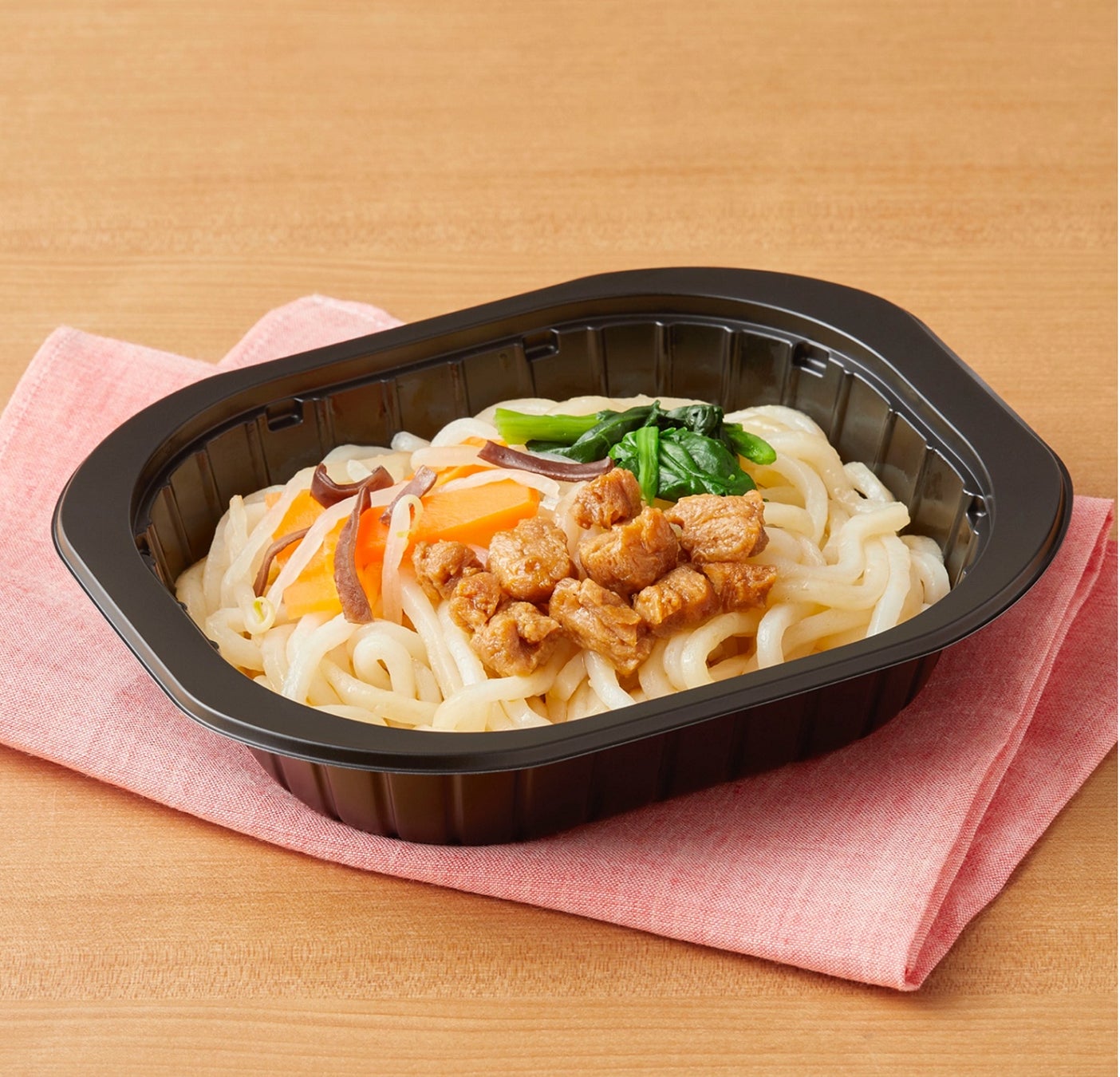 厳選した米粉を主原料として、うどんのようなもちもち食感の中太麺を独自開発しました。お米の香りがふんわりと香る中太麺は、濃いめの味付けと相性抜群です。特長④トレー付き・電子レンジで簡単調理