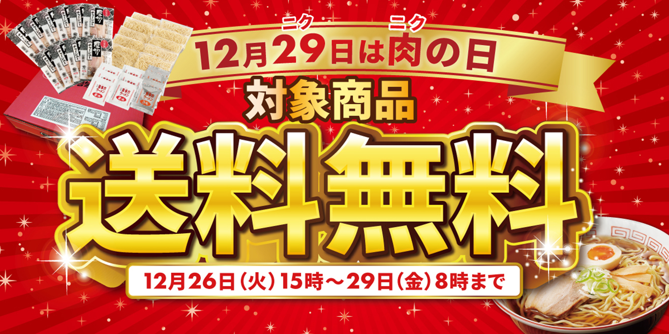 《12月29日は“肉(ニク)”の日》喜多方ラーメンの河京「<肉の日限定>対象のチャーシューメン送料無料キャンペーン」を開催