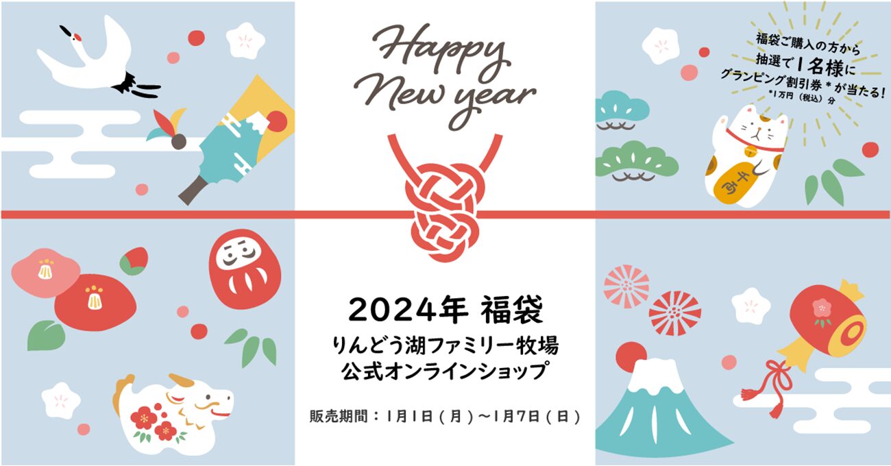 また、支えてくださった皆様への感謝の気持ちを込めて、福袋をご購入いただいた方から抽選で1名様へ、りんどう湖ファミリー牧場グランピング宿泊1万円割引券をプレゼントいたします。新年の運試しに、ぜひご購入ください。