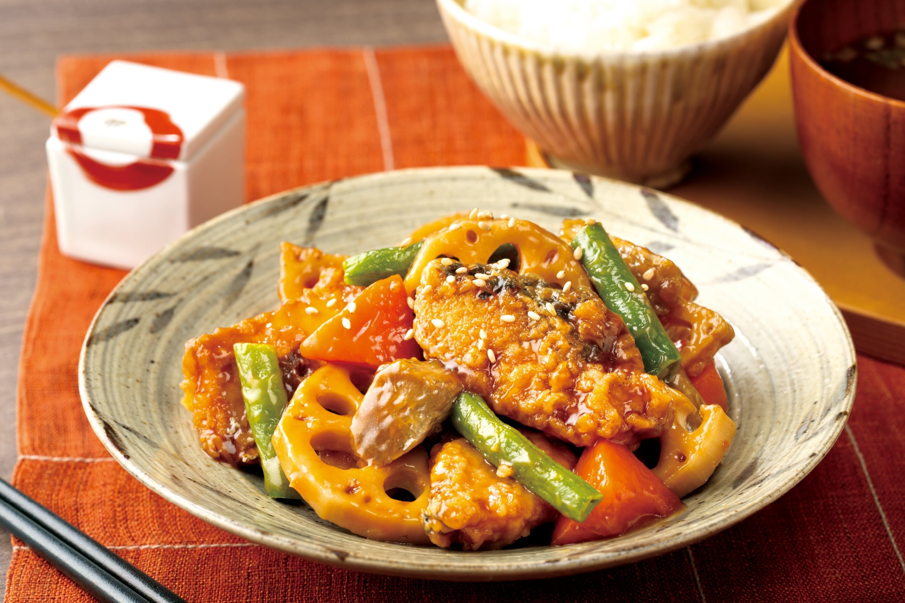 甘辛タレが引き立てるノルウェー産さばと3種の根菜。