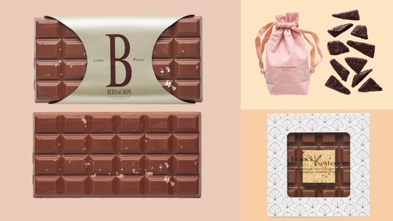 27歳でMOFを取得し、地元サルグミン村のアトリエ兼ショップとパリのショップの2店舗を運営するフランク・ケストナー。新作タブレットは、2層になったラム酒風味のマロンクリーム&ペーストとバニラ風味のマシュマロが、ミルクチョコレートでコーティングされています。