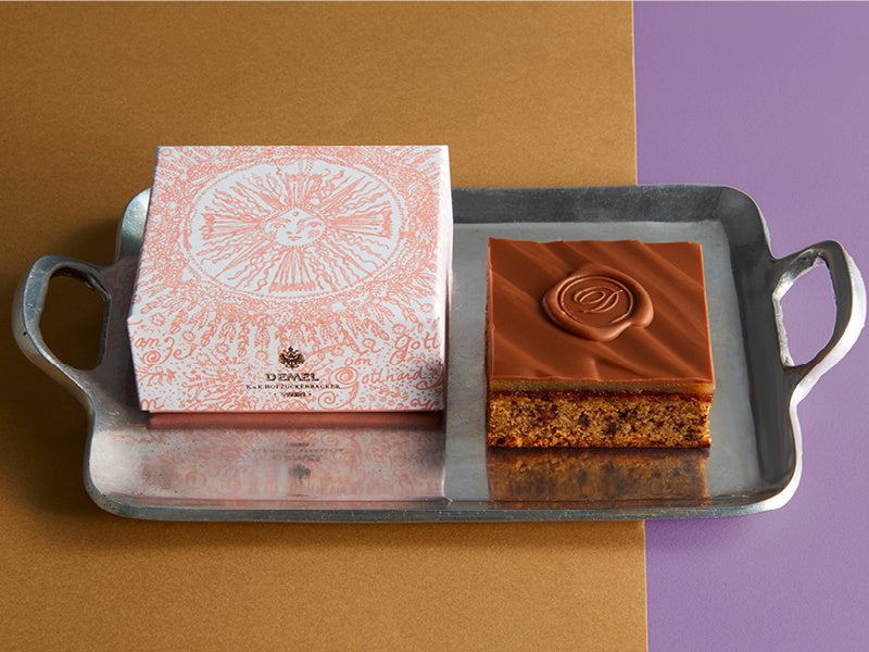 1786年にハプスブルク家ゆかりの地で生まれ、ハプスブルク家の紋章をブランドマークとしている<デメル>。そんな由緒ある老舗洋菓子店から、銀座三越限定の「デメルクーヘン」が登場。チョコレートやナッツ、オレンジを加えた焼菓子の上に、アプリコット・マジパンを重ね風味豊かなミルクチョコレートをたっぷりとコーティング。食べ応えのあるボリュームですが、チョコレート好きの方なら思わず独り占めしたくなりそうな一品です。