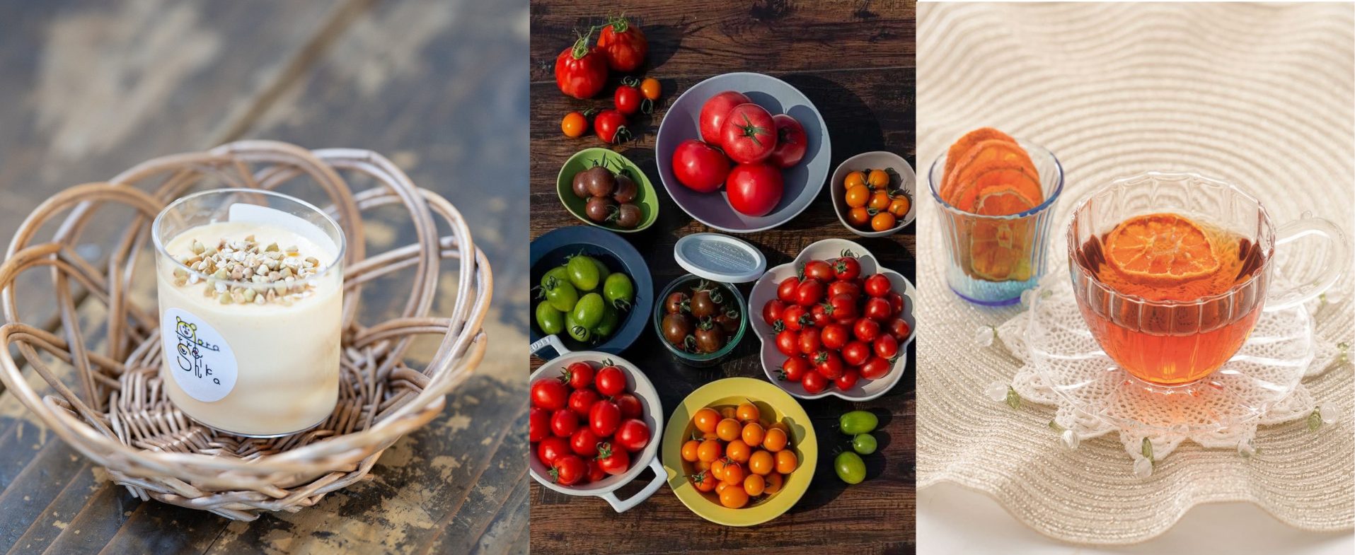 今回は、県南西部の鹿島市より5社の事業者が出店。かしま自然農園(Tora&Shika)の「そばの実をかけて食べるぷりん」、たにぐちファームの”とりこ”になる「リコトマト(カラフルトマト)」、地元企業と共同開発した海道しるべの農水産加工品等、塚島ファームの搾りたて生乳の風味を楽しめる卵不使用「STELLAジェラート」、岡屋Farm&ilyの国産品種「宝韶寿レモンのシロップ」などの特産品を、数量限定で販売いたします。