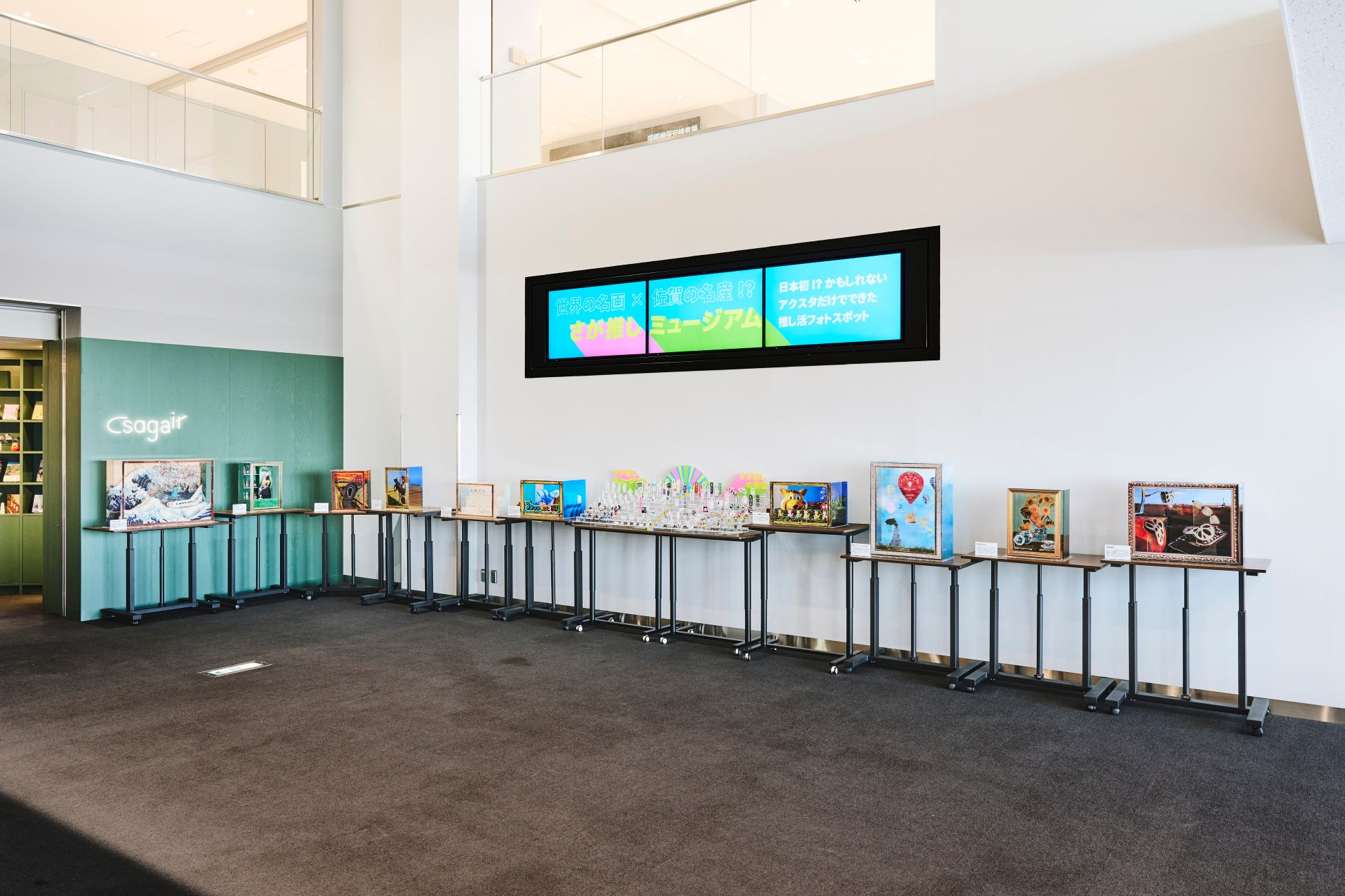 「sagair」前イベントスペースに2023年3月から常設展示をしている「さが推しミュージアム」は、空港利用者の旅の思い出作りや推し活をはじめ、純粋に見て楽しみつつ佐賀を知っていただけるコンテンツとして、「世界の名画×佐賀の名産⁉」をテーマに、推し活のお供であるアクスタをフル活用した、日本初⁉かもしれないアクスタだけでできた推し活フォトスポットです。