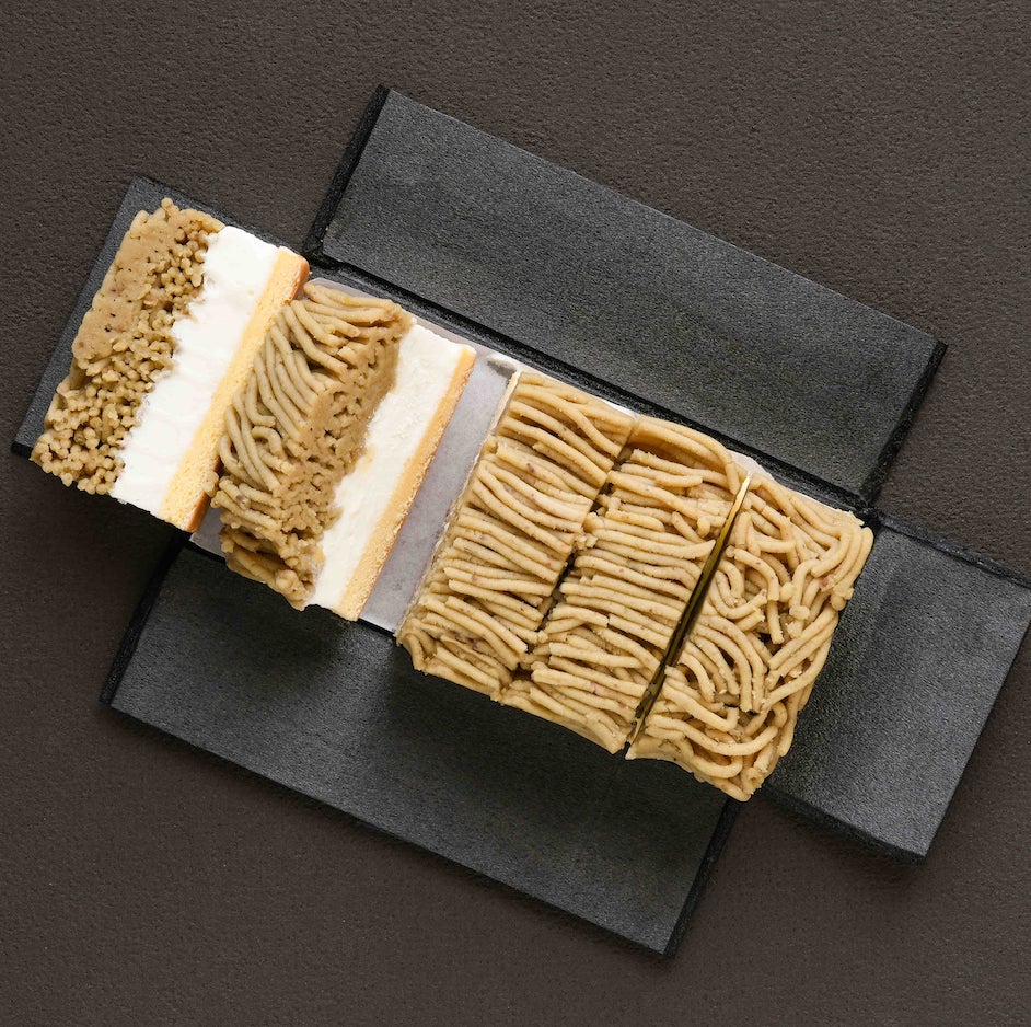 サイズを大幅リニューアルし、3〜5名様でお召し上がり頂きやすくなりました。さらに、モンブランの形を長方形にし、フラットな状態に展開できる菓子箱をご用意。ご自宅でも簡単・綺麗にお取り分けできるようになりました。