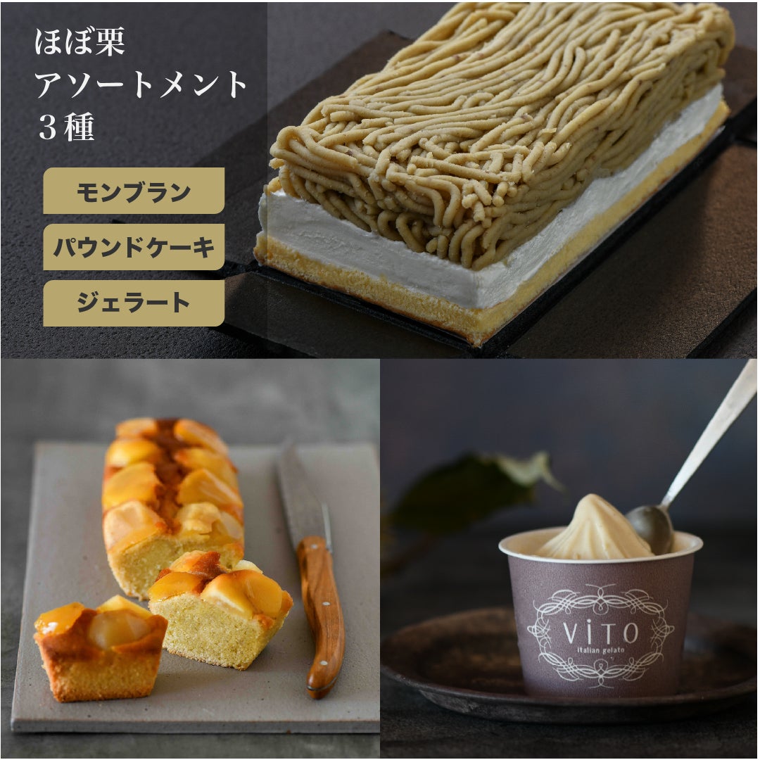 モンブラン、ジェラート、パウンドケーキをそれぞれ組み合わせたセットギフトもご用意しております。