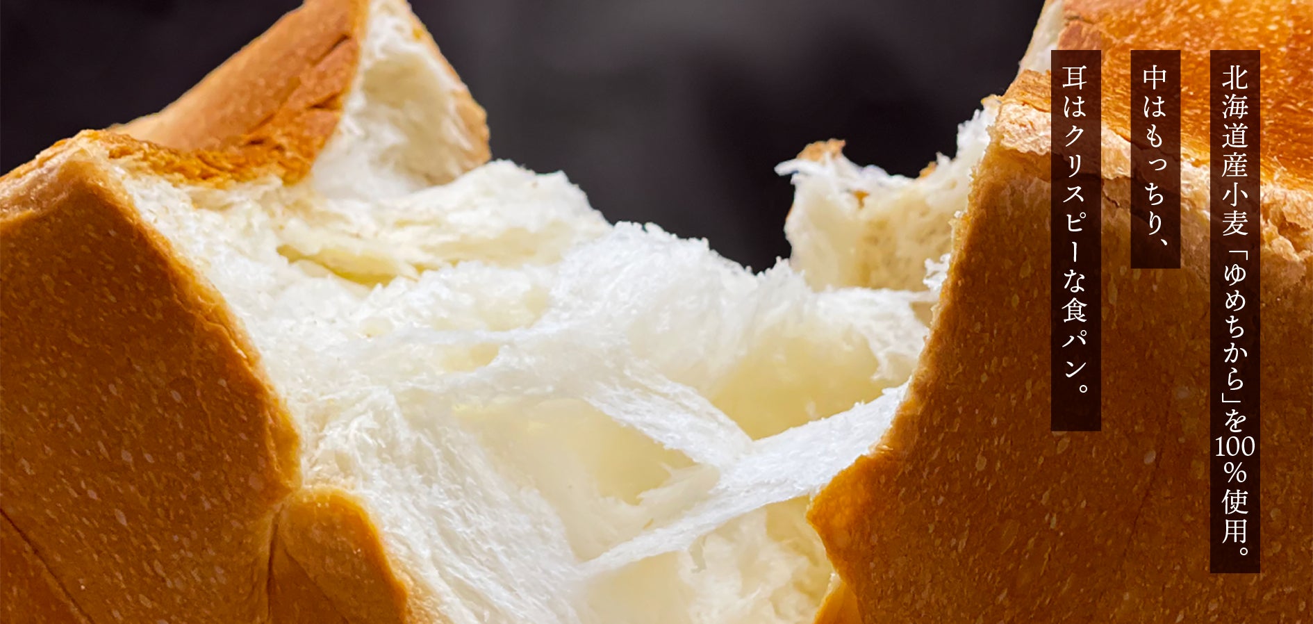 毎日食べる食パンだから、美味しさだけでなく品質も重視したい。そんな想いで試行錯誤しながらたどり着いた北海道産小麦『ゆめちから』を100%使用して完成させました。卵・乳製品・ハチミツ・バター・マーガリンを一切使わずにおつくりしているので、ちいさなお子様やアレルギーをお持ちの方にも安心して召し上がっていただけます。