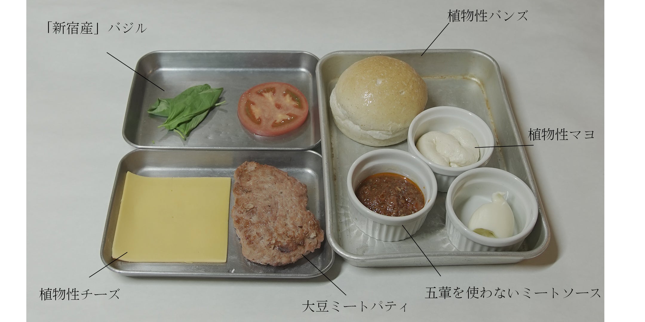 今回の完全菜食ハンバーガーでは、店内で種から育てられた「新宿産のバジル」を食べられることができます