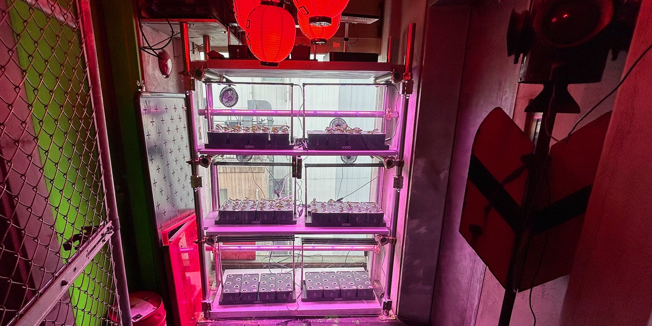 NEO新宿アツシでは、土を使わずに水と液体肥料(養液)だけで植物を育てる水耕栽培を行っています。植物の根を養液に浸し、根から必要な水分と養分を吸収させることで、植物を成長させる栽培方法はこれも我々の考える未来では主流になるのではないか?と思い続けてきました。