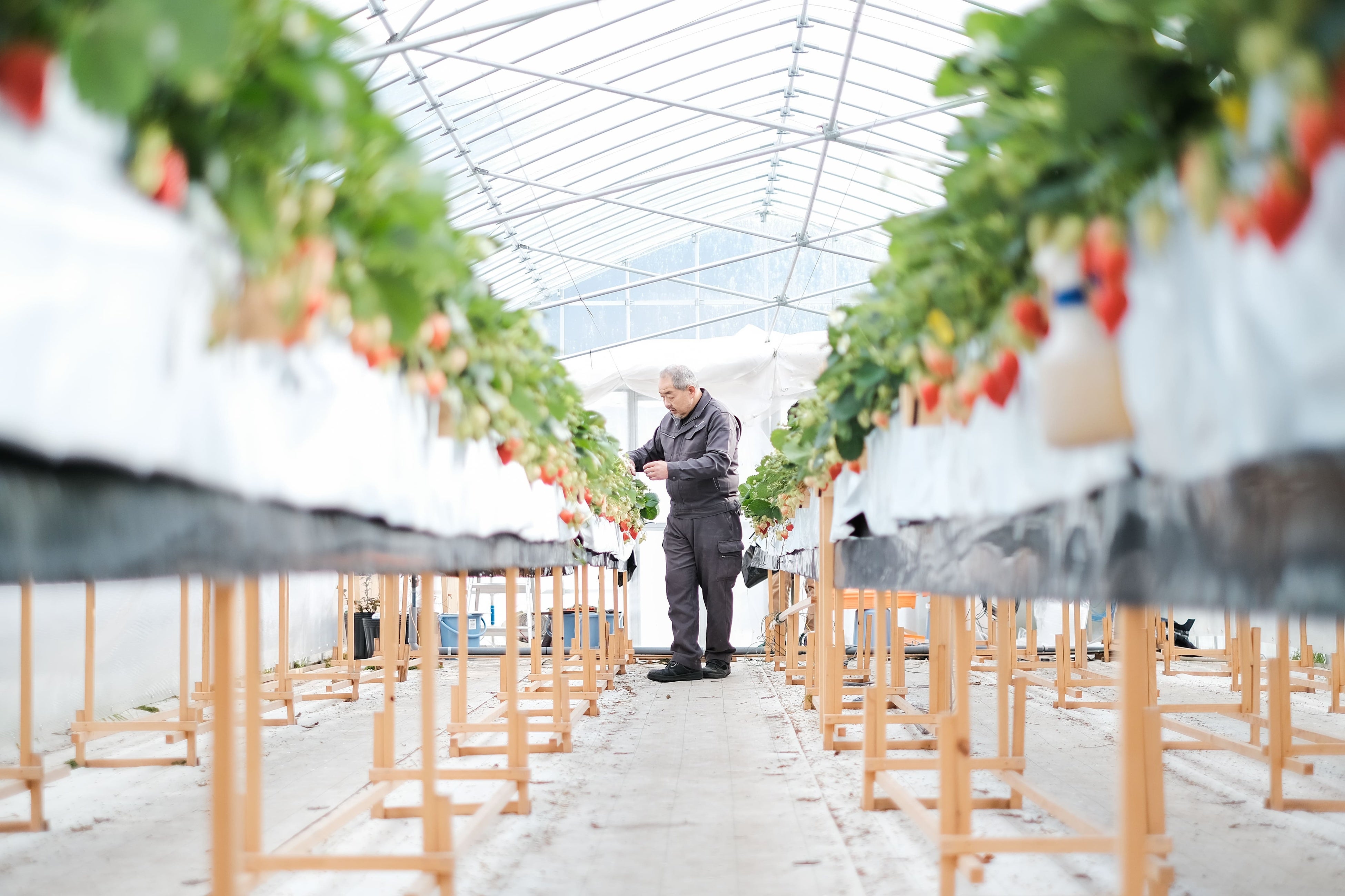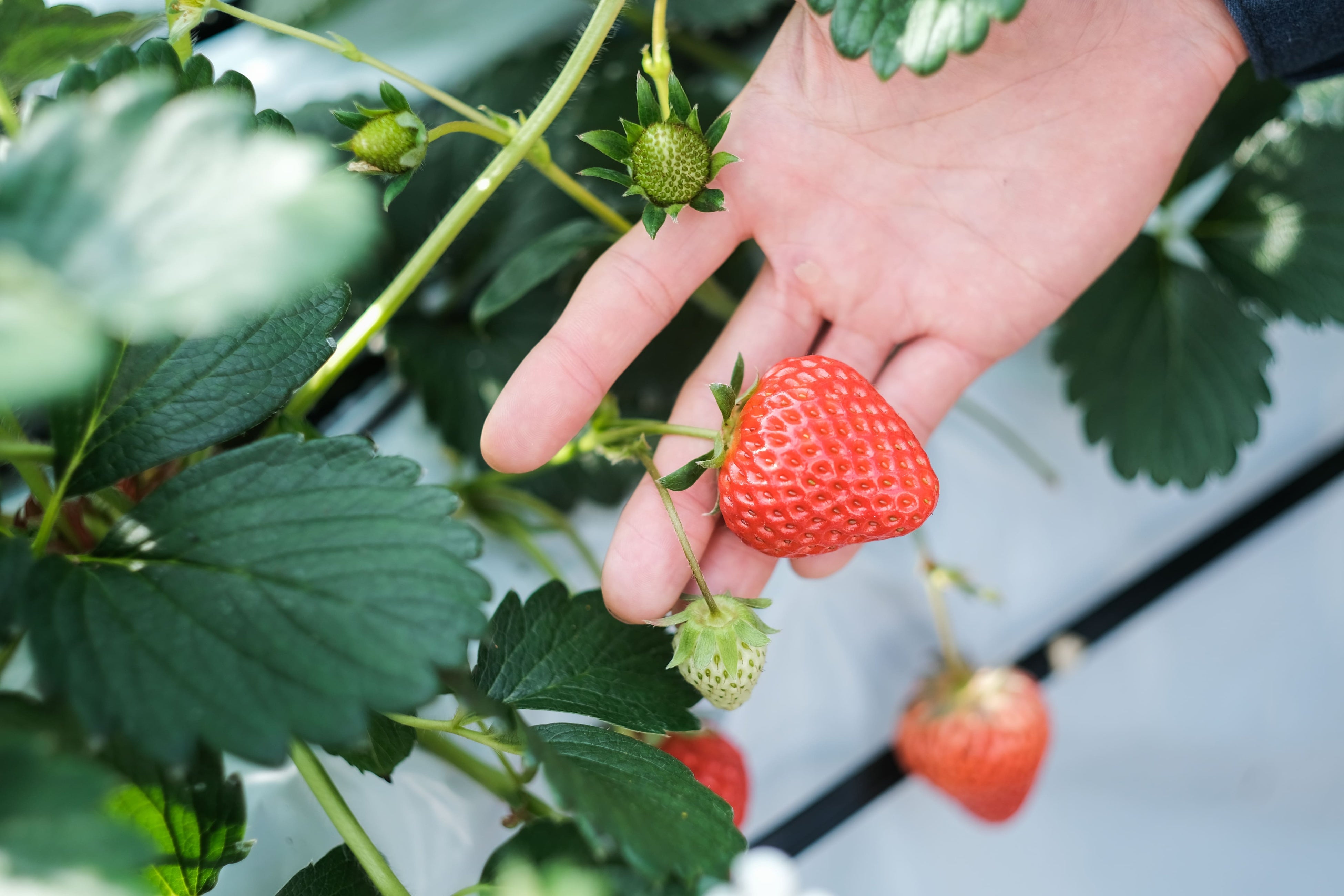 寒暖差により甘みをたっぷりと蓄えたいちごが育っています。