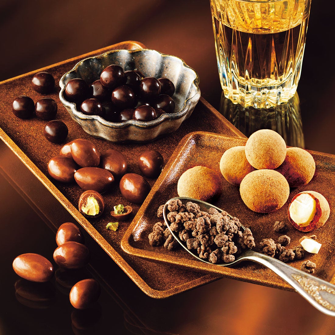 ウイスキーのおつまみとして、カカオ感や素材の食感、粒の大きさにもこだわり仕上げた4種類のチョコレートの詰め合わせ。お好みのウイスキーと組み合わせて、手軽にペアリングを愉しめます。お酒が好きな方へのプレゼントにぴったりです。