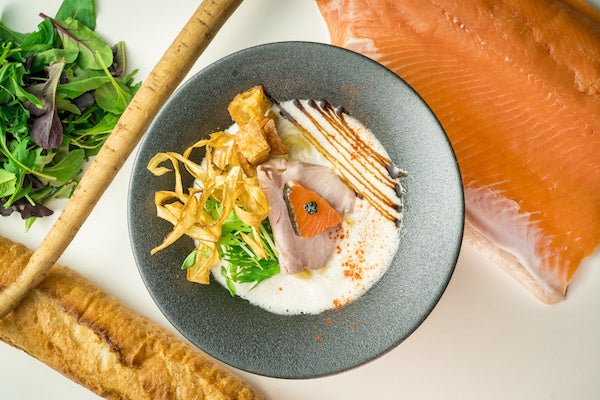今回は1匹のサーモンを頭から尻尾の先まで丸ごと使い、本来は捨ててしまう様々な部位からもサーモンの旨味を抽出。