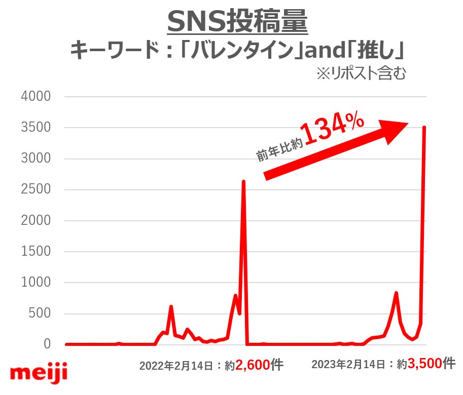 ☑「バレンタイン」「推し」を含むSNS投稿は前年比約134%と大きく伸長