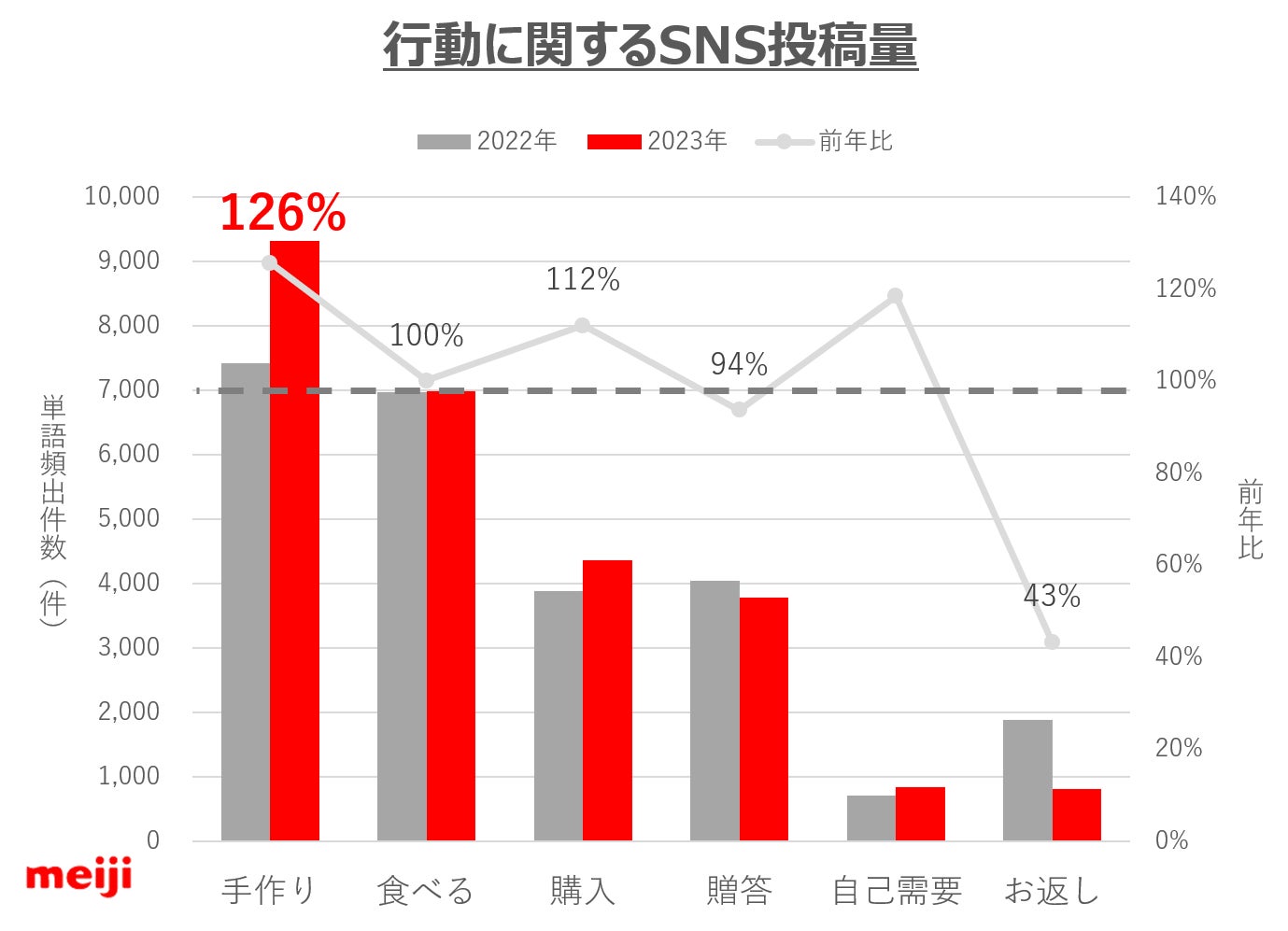 2022年と2023年のバレンタイン期間(1月1日~2月28日)でバレンタイン関連のSNS投稿を調査したところ、2つのトレンドが見えてきました。