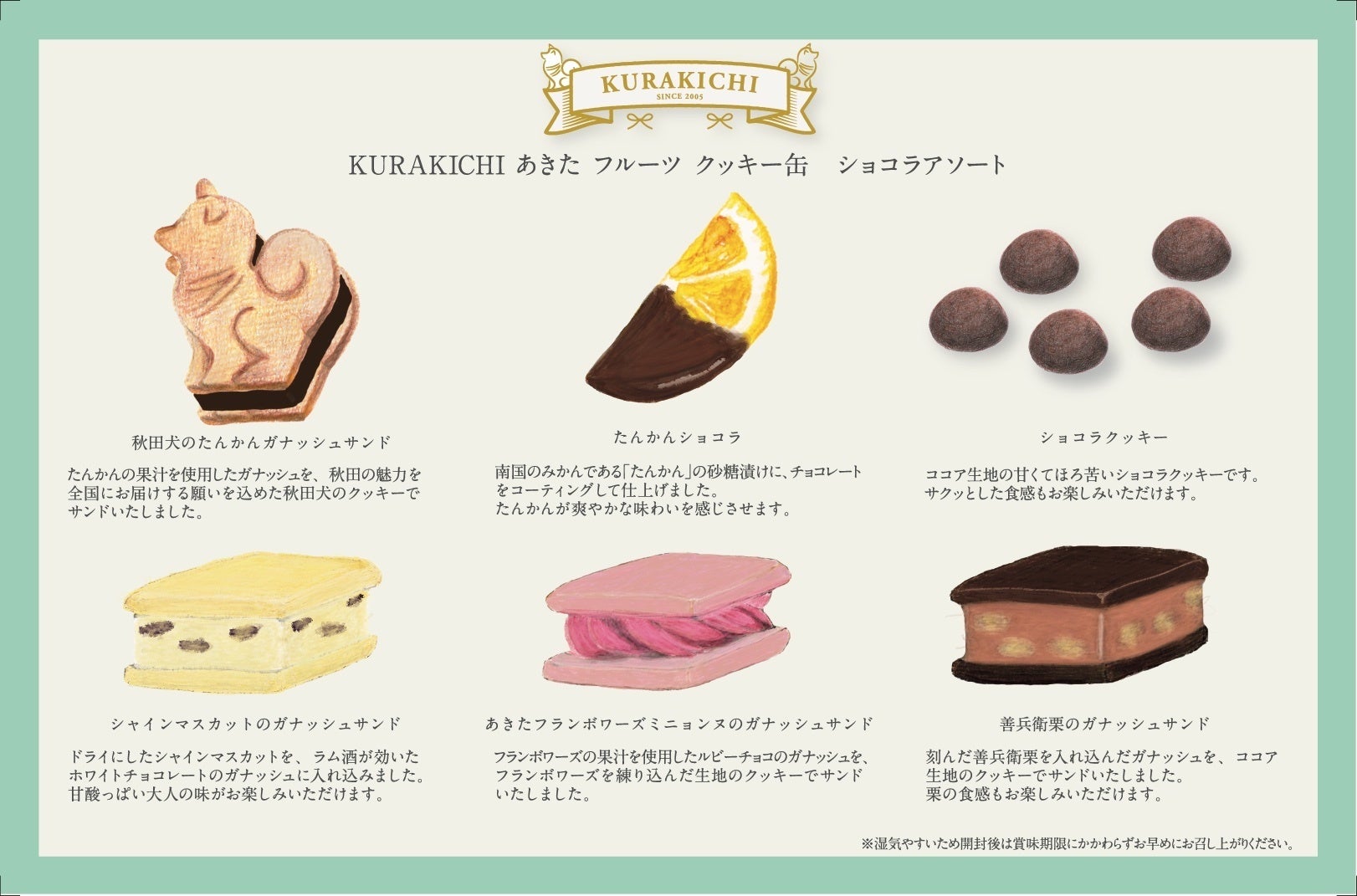 この度、2024年のバレンタインに向けて、クッキー缶の新商品「KURAKICHI あきた フルーツ クッキー缶(ショコラアソート)」を販売いたします。
