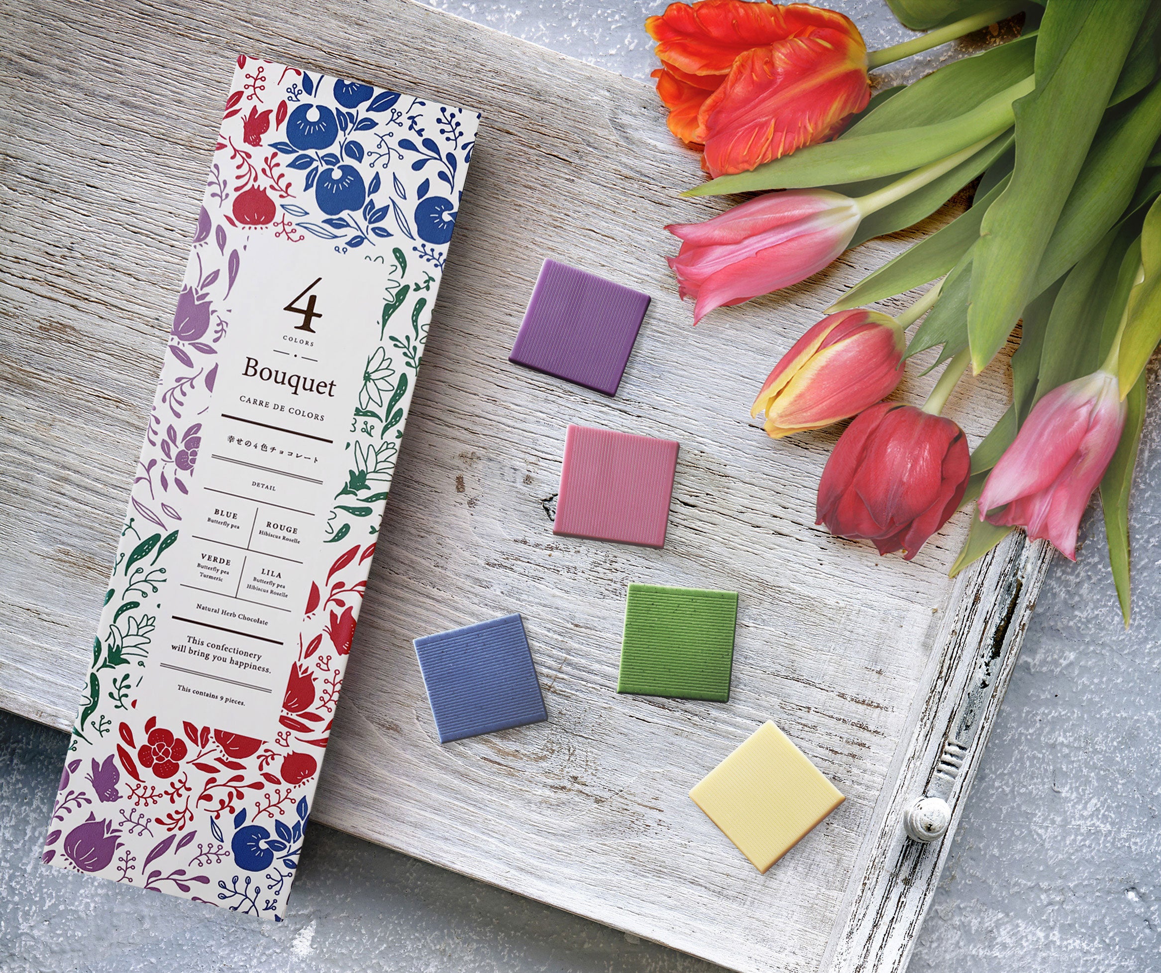 「ブルー・レッド・グリーン・パープル・オレンジ」の5色で思いを届けるバレンタインチョコをご紹介!天然のハーブで着色したこだわりのチョコレートに新商品3点が加わり、今年は9種類のラインナップ!