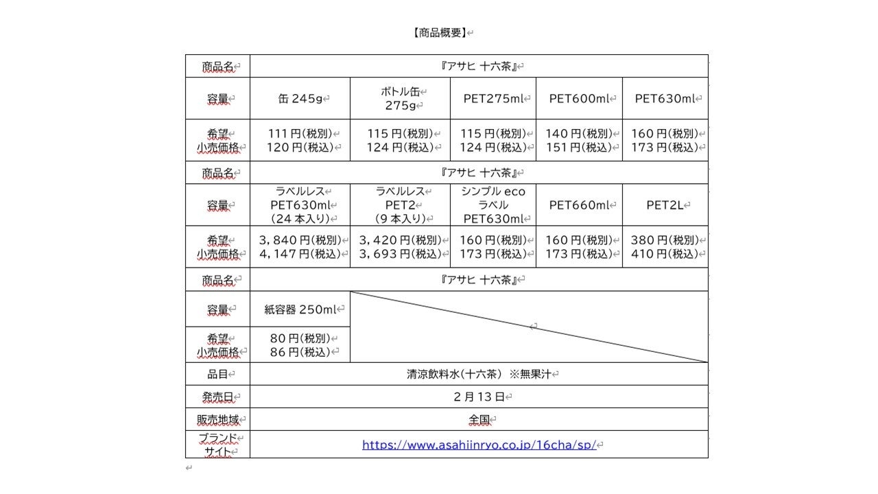 アサヒ飲料株式会社(本社 東京、社長 米女太一)は、『アサヒ 十六茶』の中味とパッケージをリニューアルして2月13日から発売します。