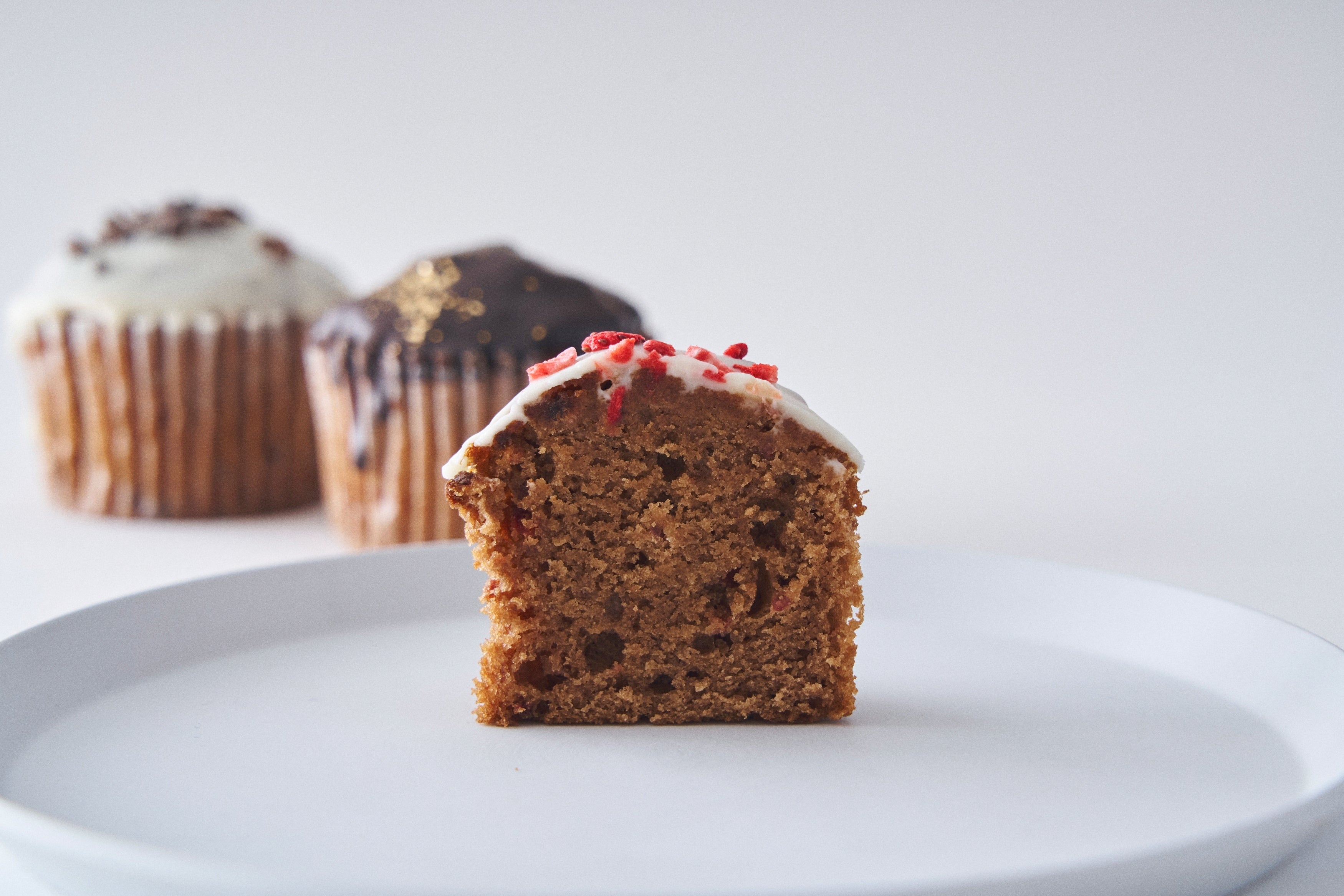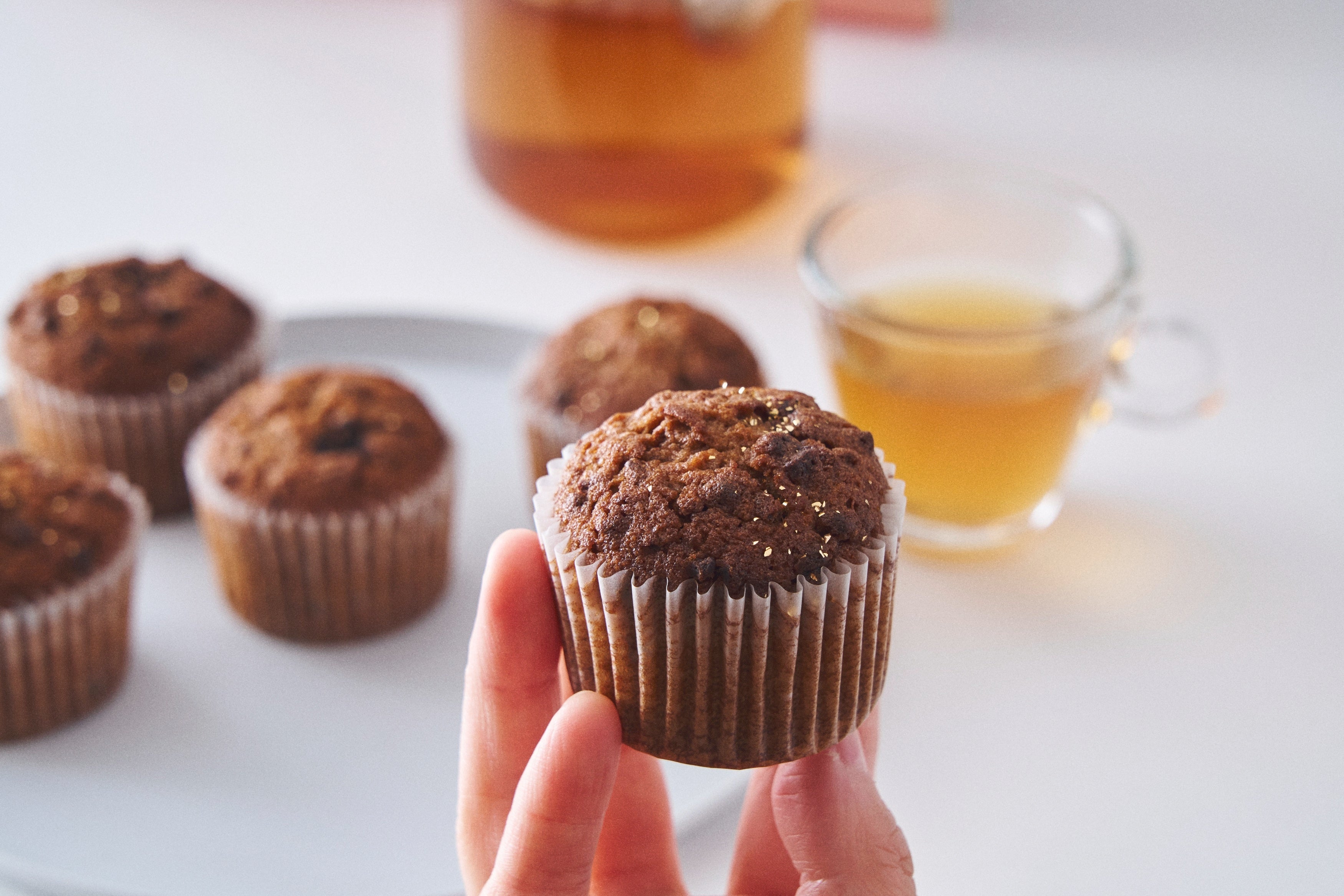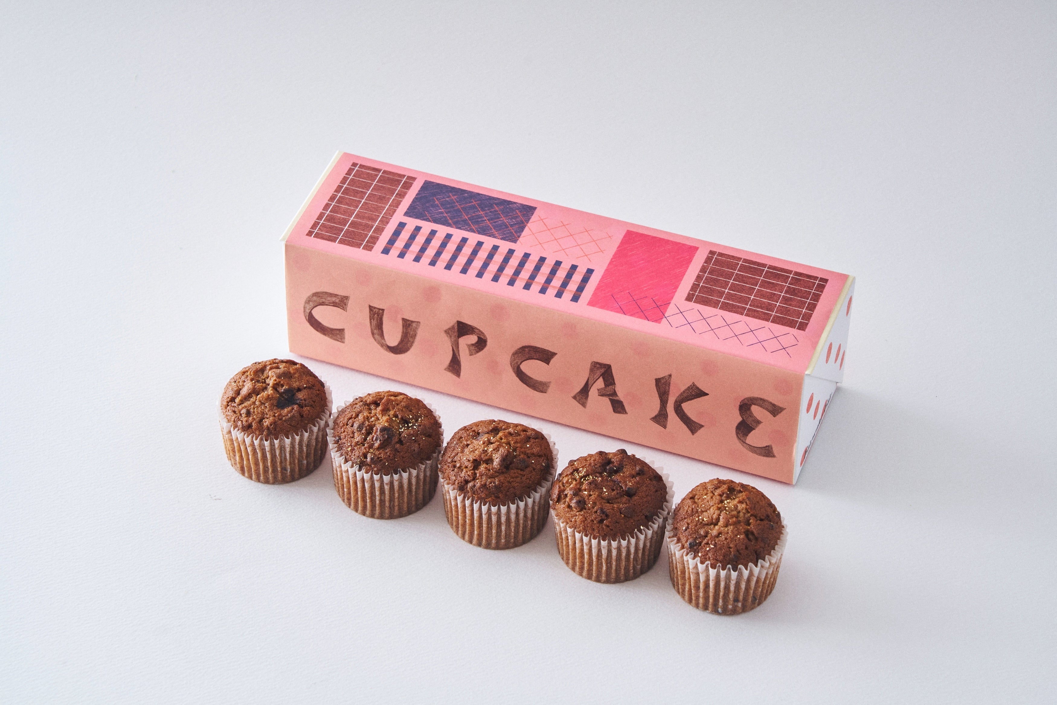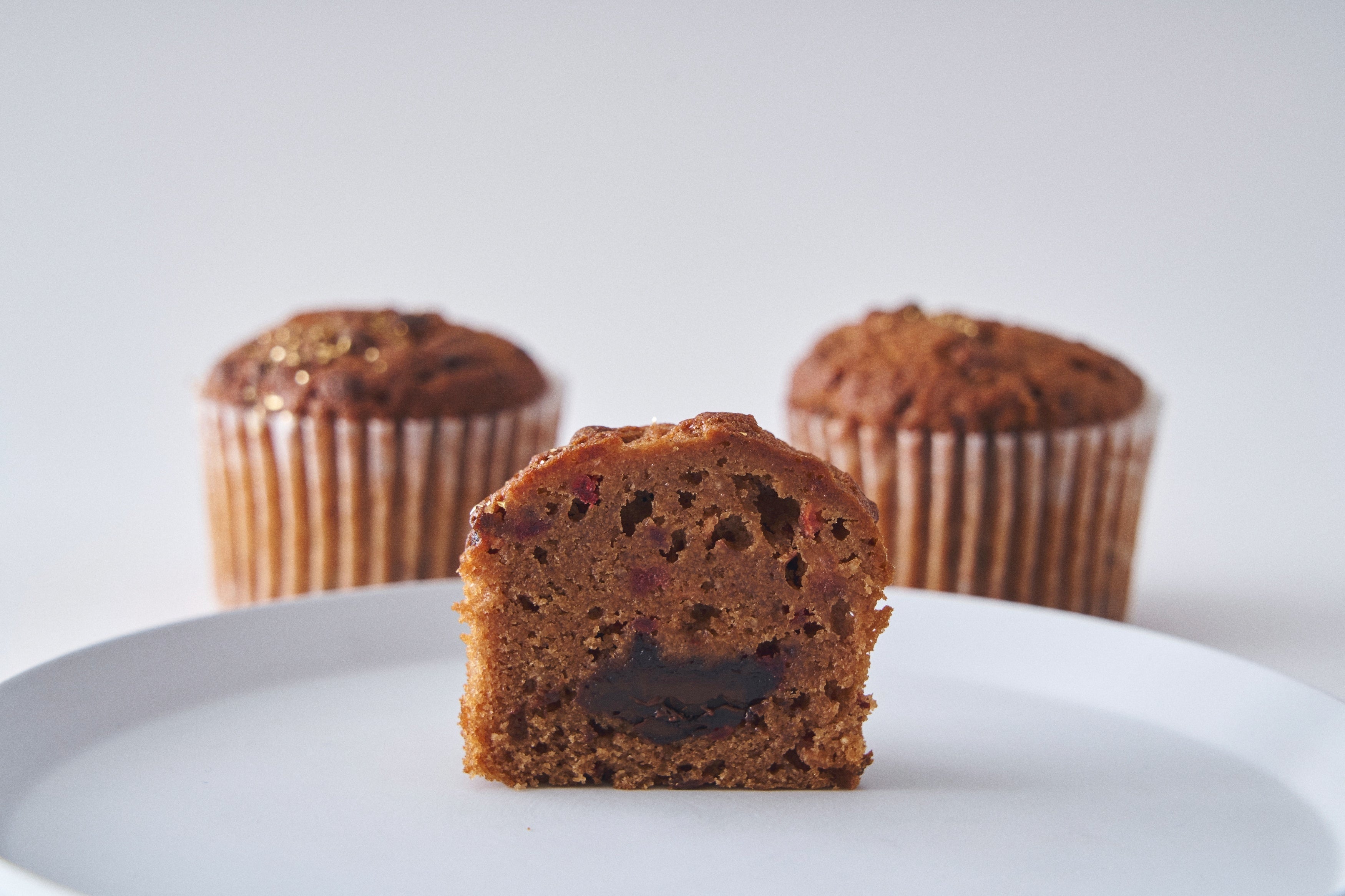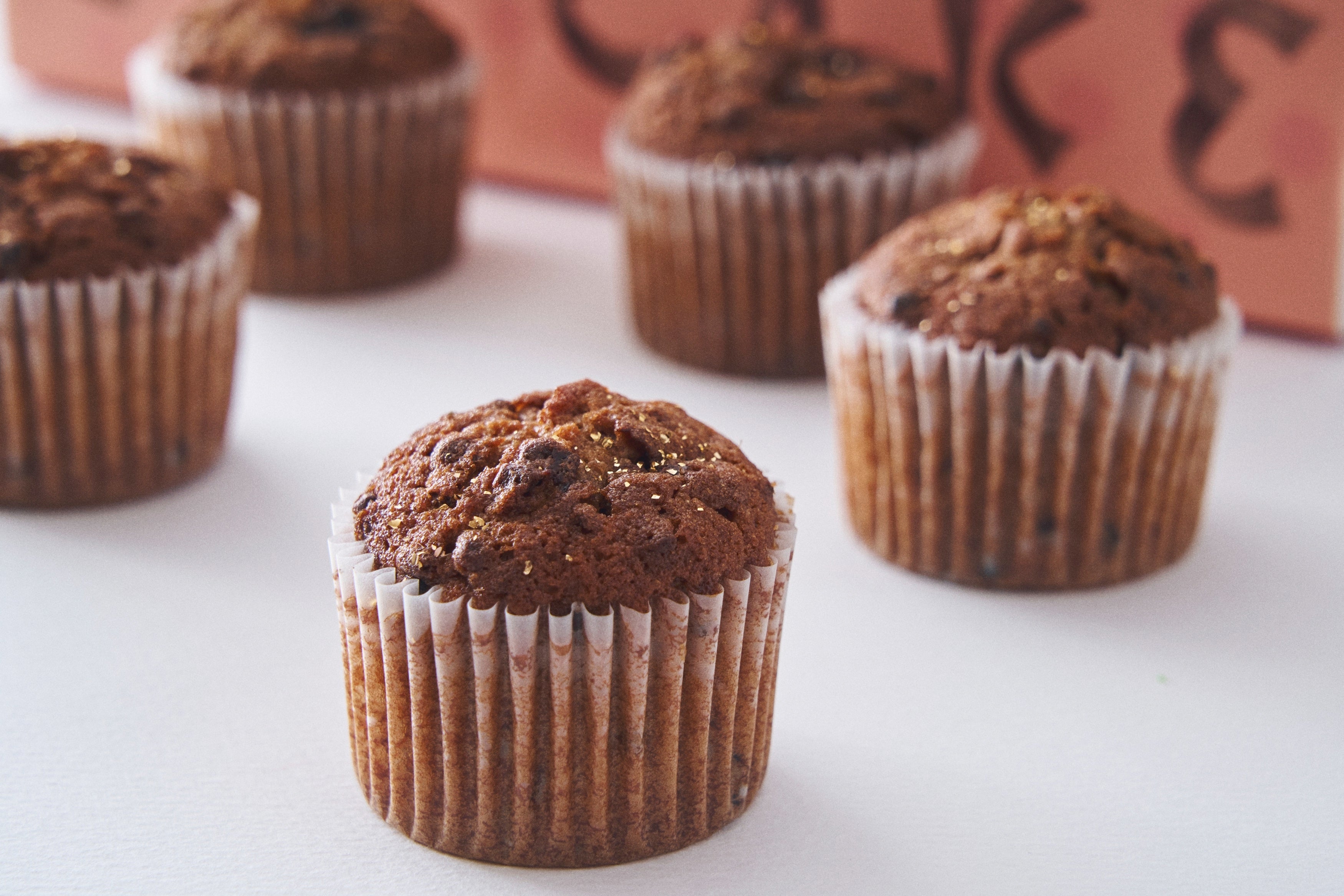 シンプルなデザインテイストがお好みの方に向けて、デコレーションを最小限にしたチョコレートカップケーキが新登場。ケーキのなかにチョコのかたまりを忍ばせ、アーモンドのような歯触りの良いゴリっと感がアクセントになっています。そのままはもちろん、レンジで5〜10秒ほど温めるとチョコがとろりと溶けて、また違った味わいも楽しめます。