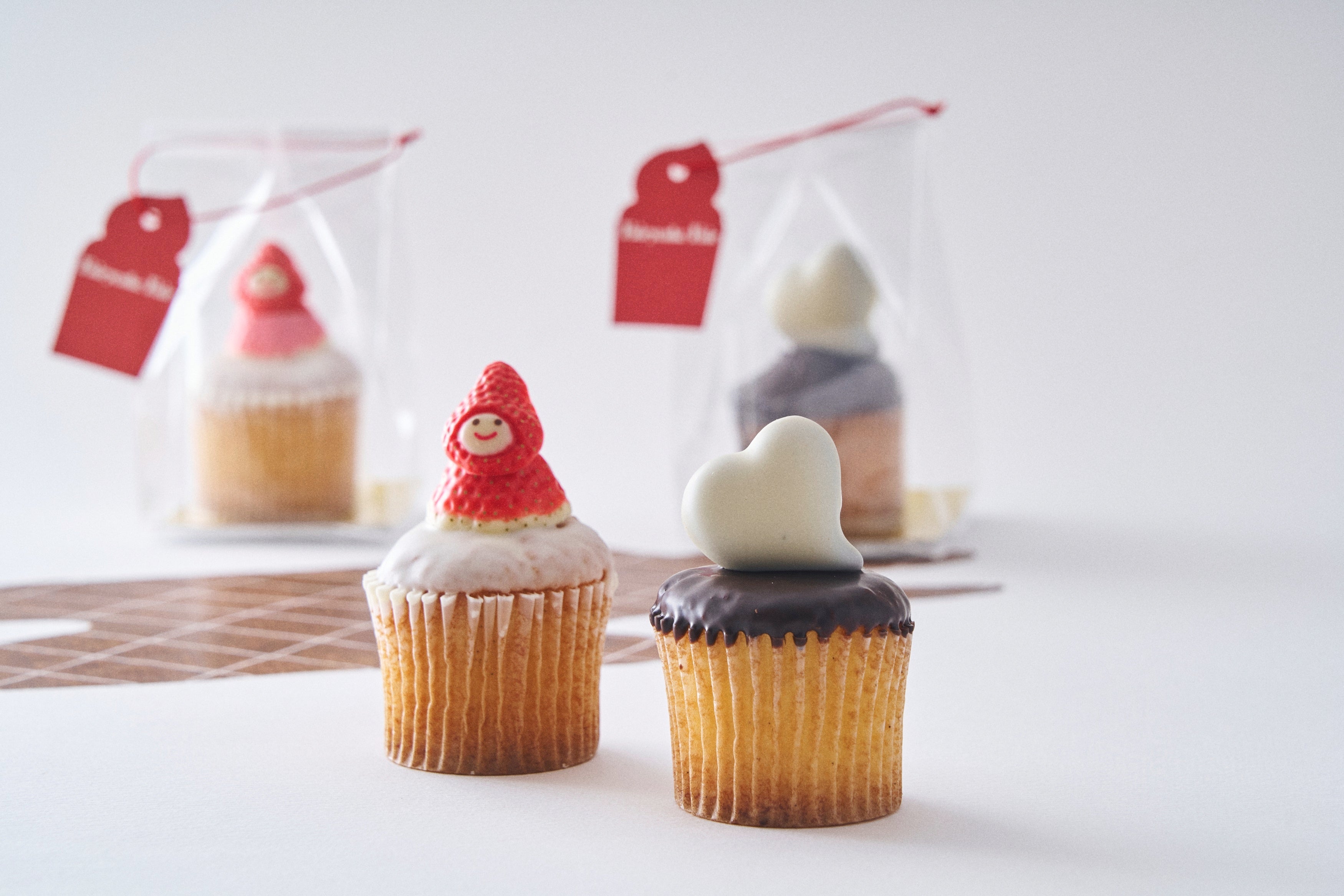 一人一人にひとつずつ配れる個包装カップケーキ「1CUPCAKE」のバレンタイン限定バージョンを販売いたします。発酵バターとバニラビーンズをたっぷりと贅沢に混ぜ込み、香り高く焼き上げたプレミアムバニラケーキに、オレンジのリキュールが入ったグランマルニエとブラックチョコレートのガナッシュをホワイトチョコレートでコーティングしたハートのボンボンショコラや、クーベルチュールを使用した食べやすいエアインチョコの“いちごの妖精”をちょこんと乗せました。手のひらサイズの焼き菓子カップケーキです。