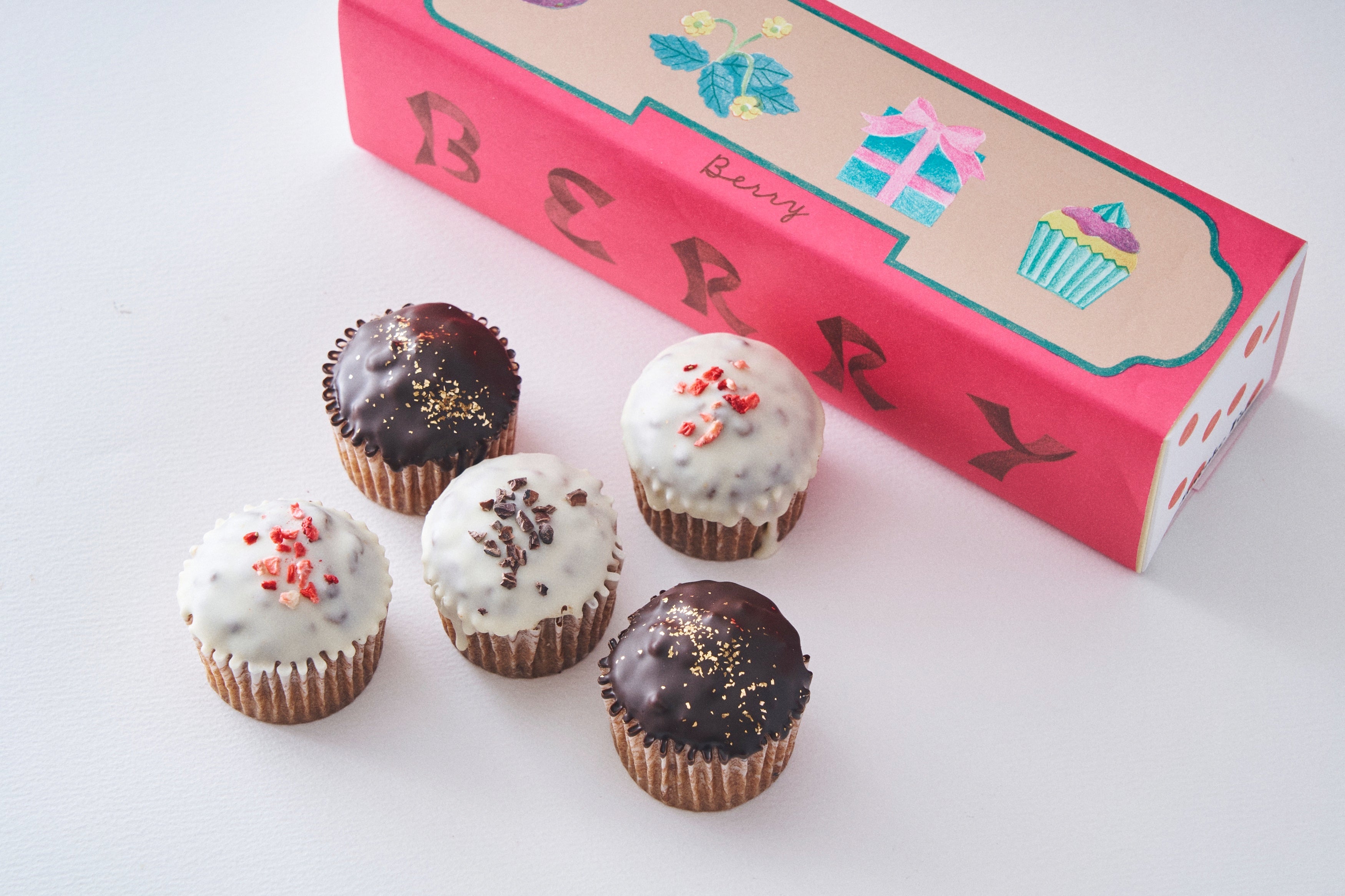 可愛い派もシンプル派も、お好みに合わせて自由に選べるデザインテイストでご用意した、濃厚ショコラ味の焼き菓子カップケーキが冬季限定で新登場。溶かしたチョコレートとカカオパウダーをたっぷりと混ぜ合わせたケーキ生地に、フリーズドライのいちごを練り込んで焼き上げた2種類のチョコレートカップケーキ「ベイクドチョコベリー」と「ベイクドショコラフィング」を販売いたします。