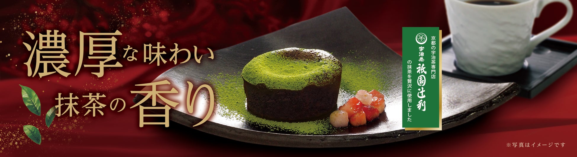 当社は、食を通じ歳時を感じていただけるよう、季節限定スイーツを展開しています。今回ご用意したのはこの時季に最適な「フォンダンショコラ」。旬のベリーと祇園辻利*の抹茶粉を添えた風雅な仕立てとなっており、中から溶け出したほんのり温かく濃厚なチョコレートと抹茶の香りが、甘さと苦みの絶妙なバランスを生み出します。さらに一杯ずつミル挽きした風味豊かなコーヒーをセットにしたお得な「フォンダンショコラホットコーヒーセット」もご用意しました。温かなコーヒーとともに、こだわりのスイーツで至福のひとときをお楽しみいただける期間限定の商品です。