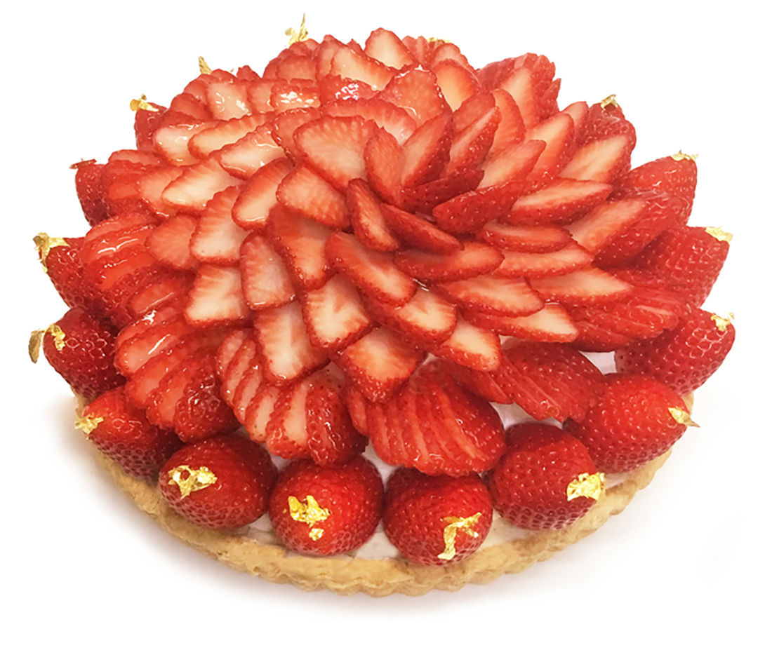 その日にパティシエがおすすめするいちごをふんだんに使用し、甘さ控えめの生クリームと共に飾りました。いちごと生クリーム、ふわふわなスポンジを合わせて4段に重ねた、ボリュームたっぷりのショートケーキです。