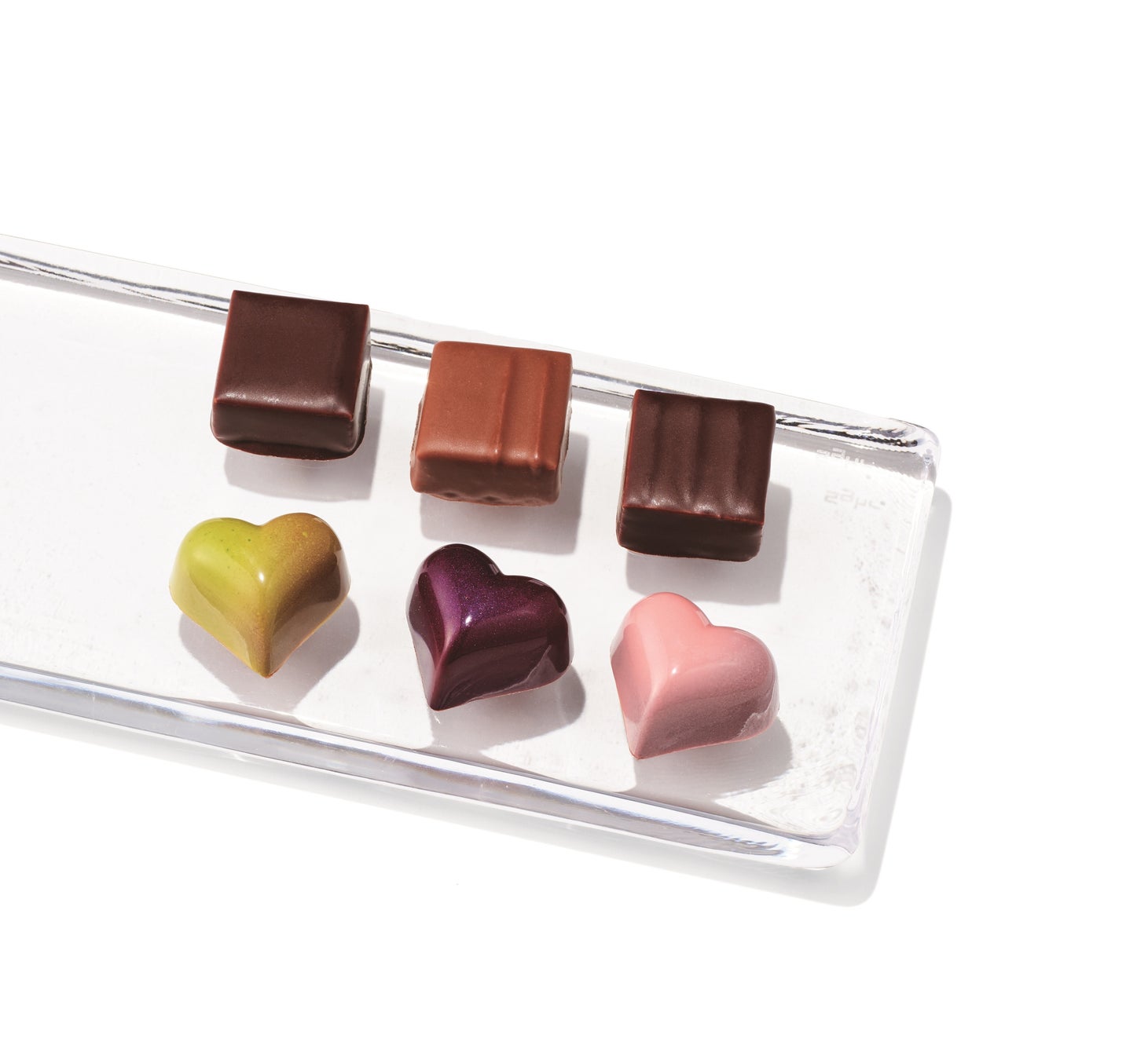 【横浜店のみ】素材の調和による香りと味わい。2024年の新作「マンダリン」をはじめ、ガナッシュやプラリネなど、〈パスカル・ル・ガック〉を代表するボンボンショコラを、ハート型の限定パッケージに詰め合わせた限定コフレが登場。