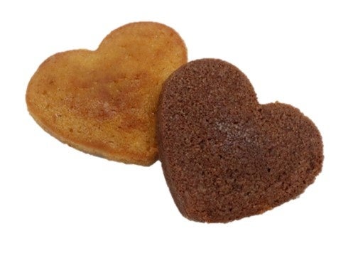 バレンタインのギフトにぴったりなハートの持ち手が可愛い箱に、ハート型のフィナンシェを詰め合わせました。「プレーン」と「ショコラ」の2種を2個ずつアソート。