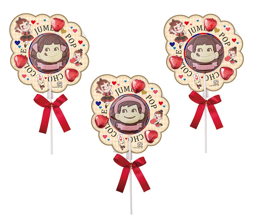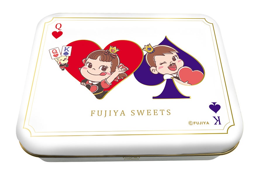 不二家のロングセラー「ハートチョコレート」と、2023年9月に新登場した「ショコラウェファース」の象徴であるハートとスペードをモチーフにした、トランプデザインのギフトを展開。ペコちゃんとポコちゃんの可愛い衣装にも注目です。