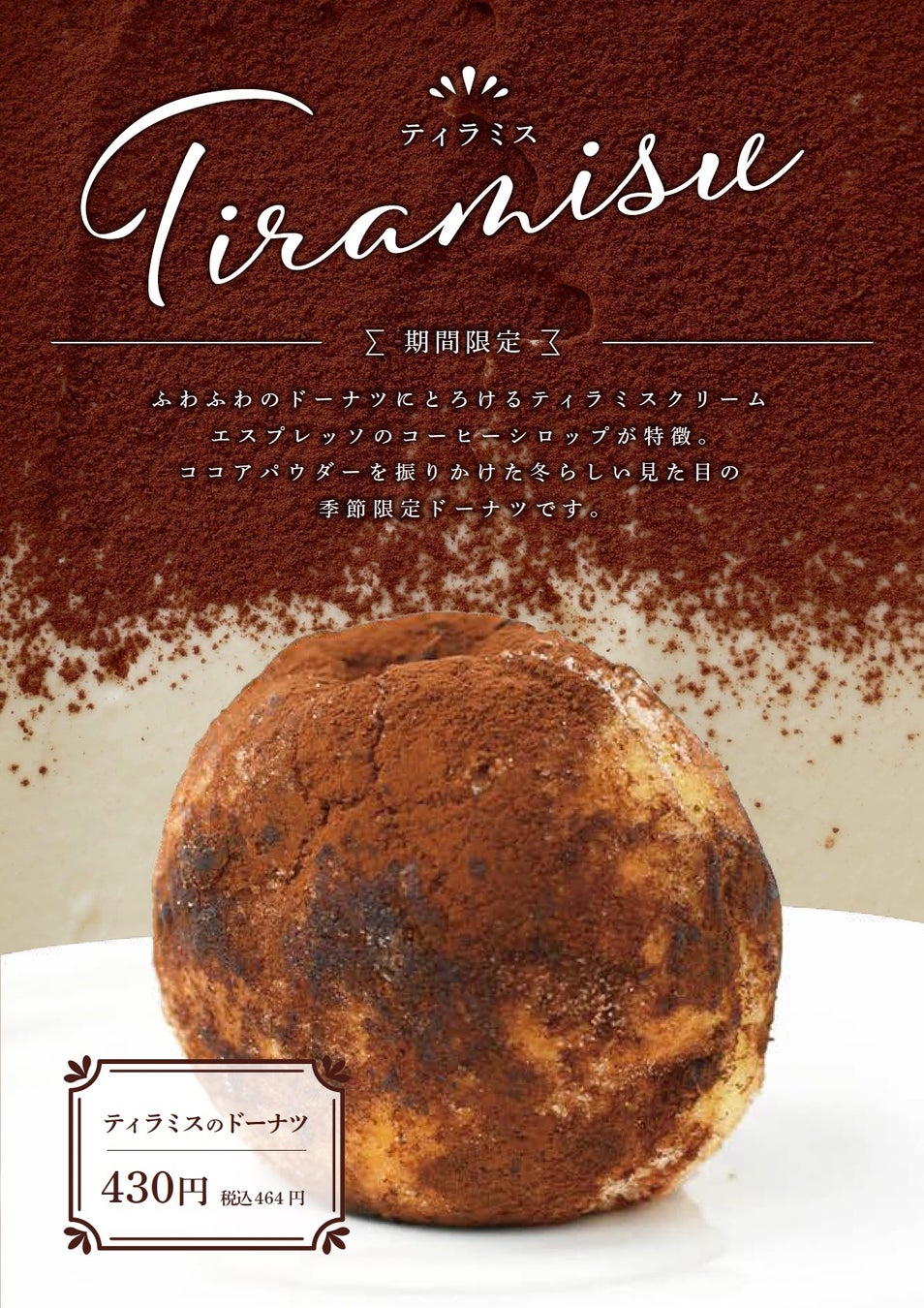 ふわじゅわ食感の生ドーナツ専門店『PIECE OF BAKE』から冬季限定の「ティラミス生ドーナツ」が発売!