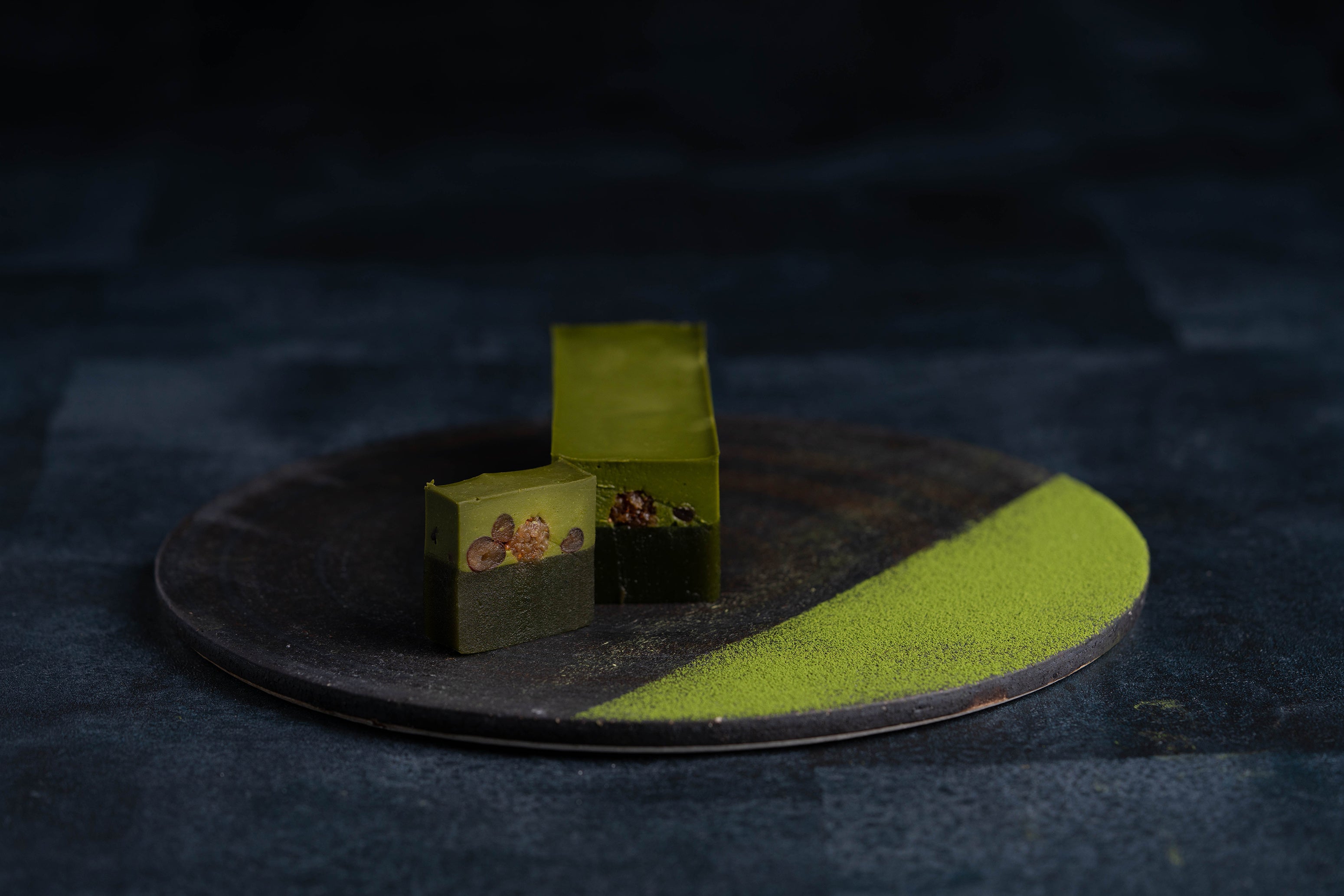 シンプルなガナッシュとみずみずしい羊羹を組み合わせたテリーヌショコラのような濃厚な口溶けの中に小豆特有の舌触りと旨みを感じる新感覚の和スイーツ「CHOCOLAT YOKAN」宇治抹茶によもぎを抽出した水を素材に使い、清涼感と香りの余韻が残る羊羹とミルキーなホワイトチョコレートに抹茶の苦味が引き立つ濃厚なガナッシュの2層仕立て。