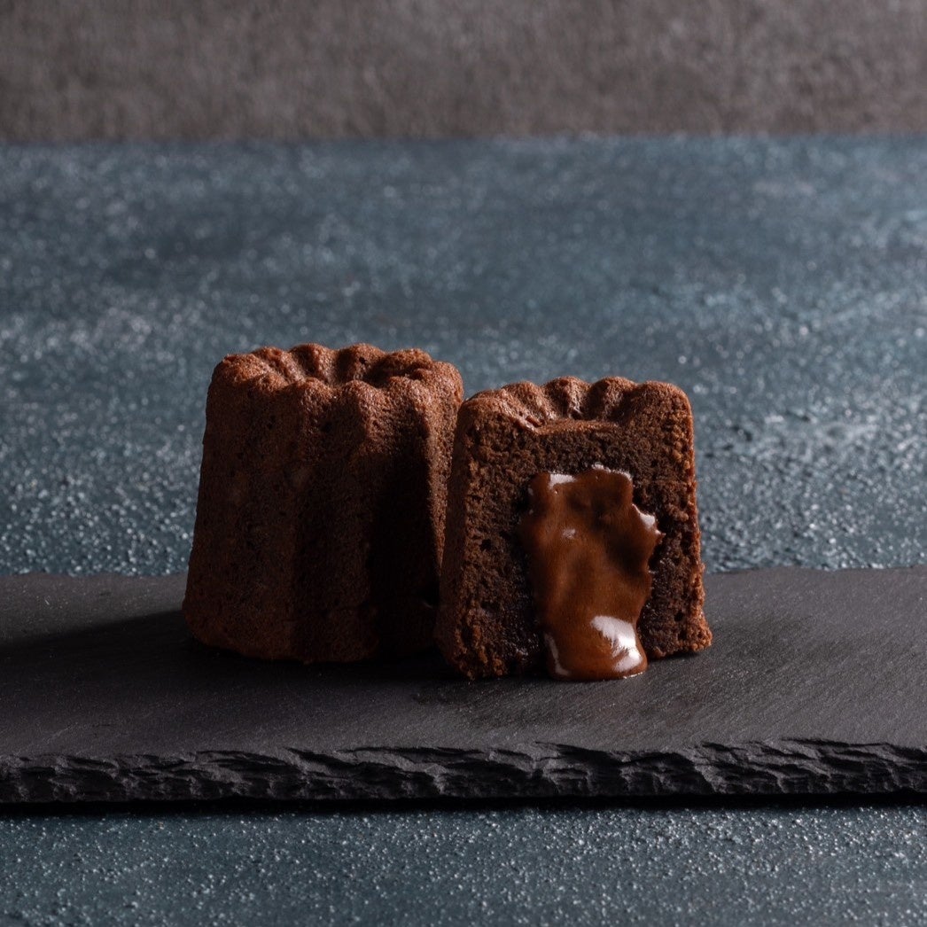希少種ホワイトカカオを使用したフォンダンショコラとガナッシュショコラを絞ったカヌレのセット。