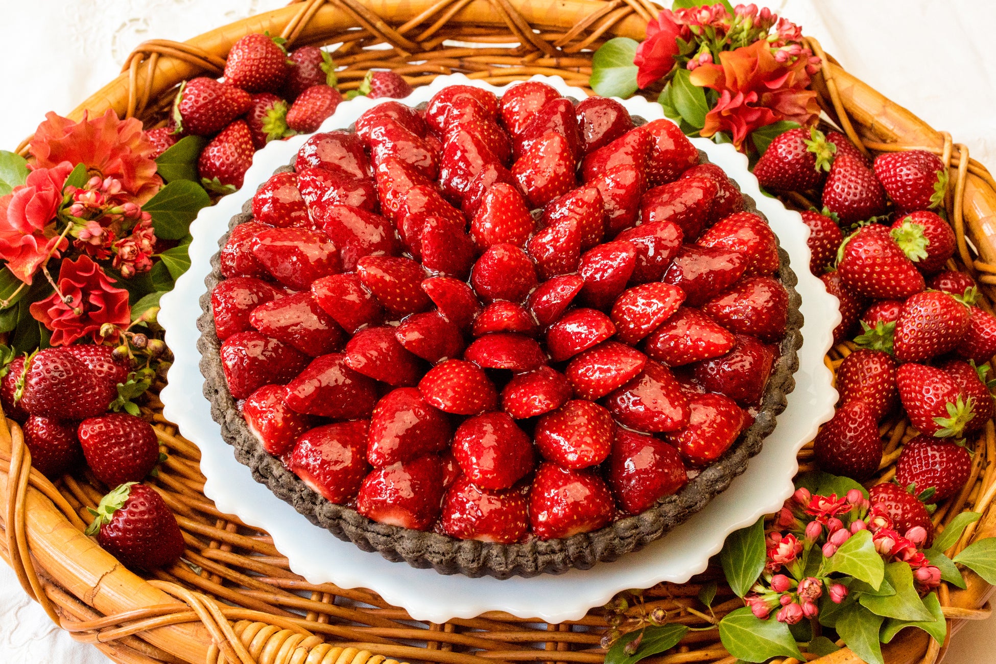 濃く深い赤色のイチゴ、通称“くろいちご”を一面に飾ったタルトを作りました。“くろいちご”は、深い色合いからの想像通り、甘い香りと強い甘みが特徴のイチゴです。自家製“くろいちご”ジャムとカスタードを合わせた、イチゴ風味のカスタードクリームに、ジューシーな果肉の“くろいちご”をふんだんに飾りました。濃厚な甘みと香りが口の中いっぱいに広がります。くろい装いに仕上げたタルトとともに お楽しみください。